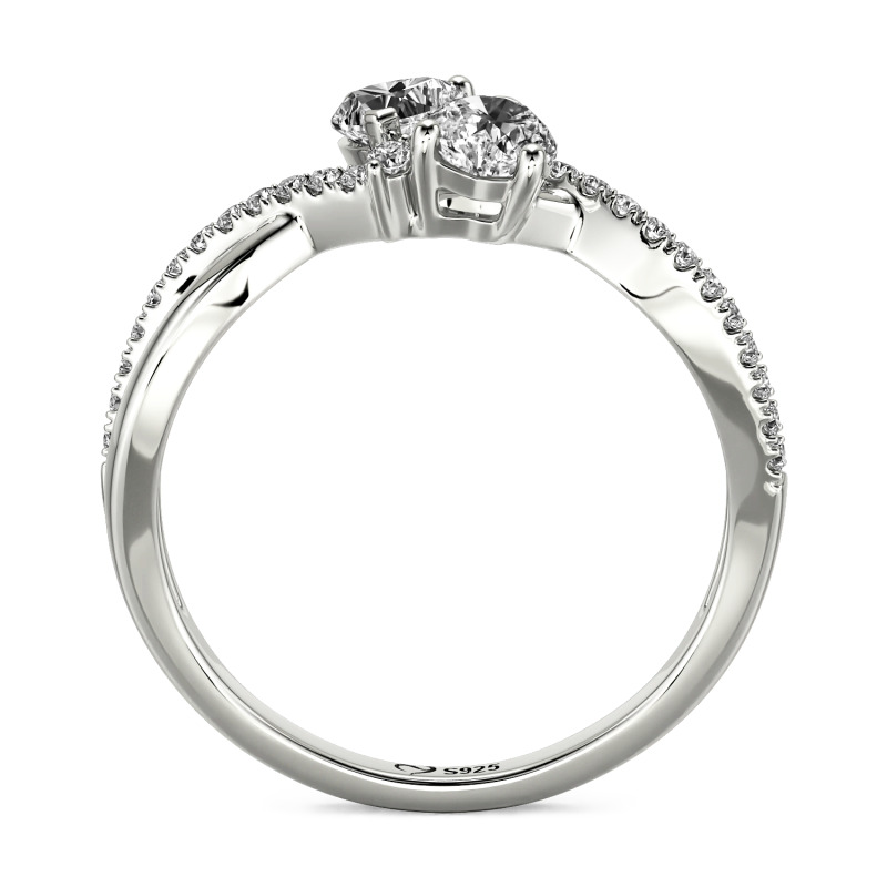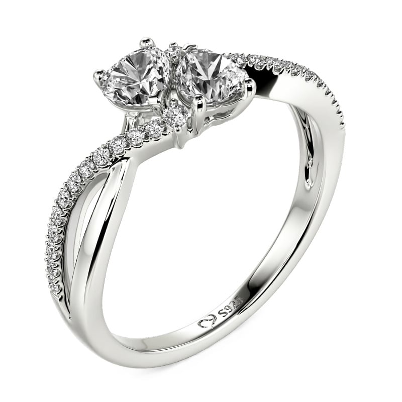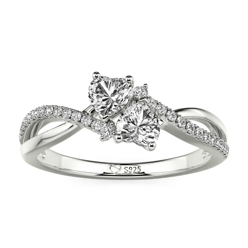 Jeulia Custom Twist Double Heart Ring Sterling Silver