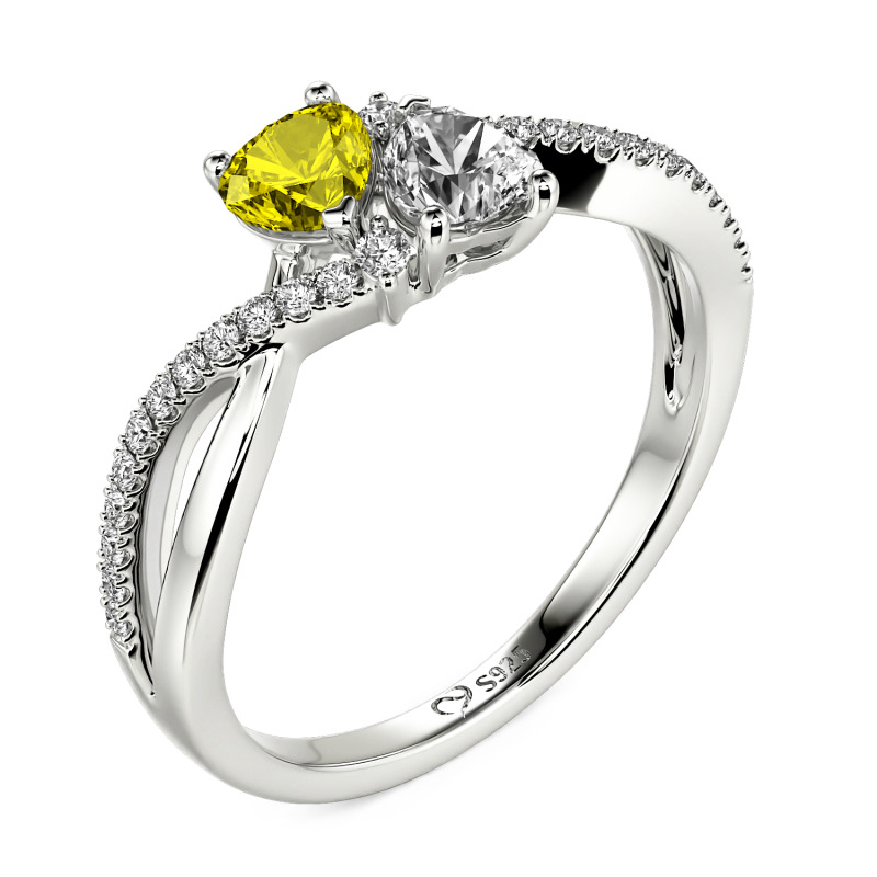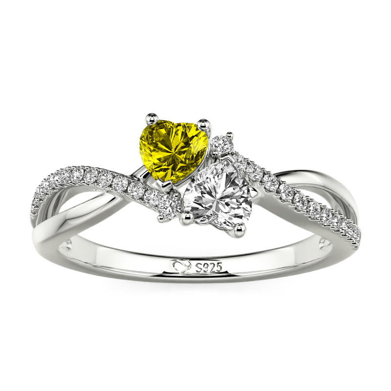 Jeulia Custom Twist Double Heart Ring Sterling Silver