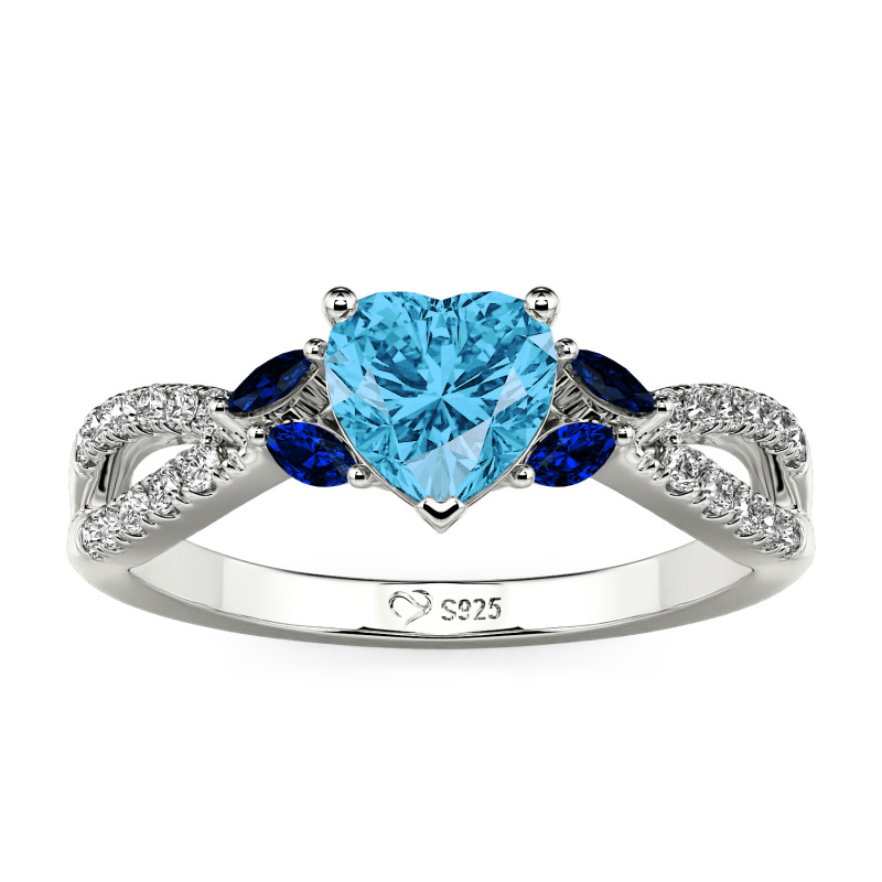 Celebrate love with the Jeulia custom twisted heart engagement ring. At its center, a brilliant heart - shaped stone sparkles with every movement, symbolizing your deep affection. Flanked by vibrant side stones, it creates a striking contrast that enhances the allure of the centerpiece. The twisted band, adorned with tiny, glittering stones, adds a touch of elegance and uniqueness. This twist ring is not just a symbol of commitment for engagements; it's also stylish enough for daily wear.