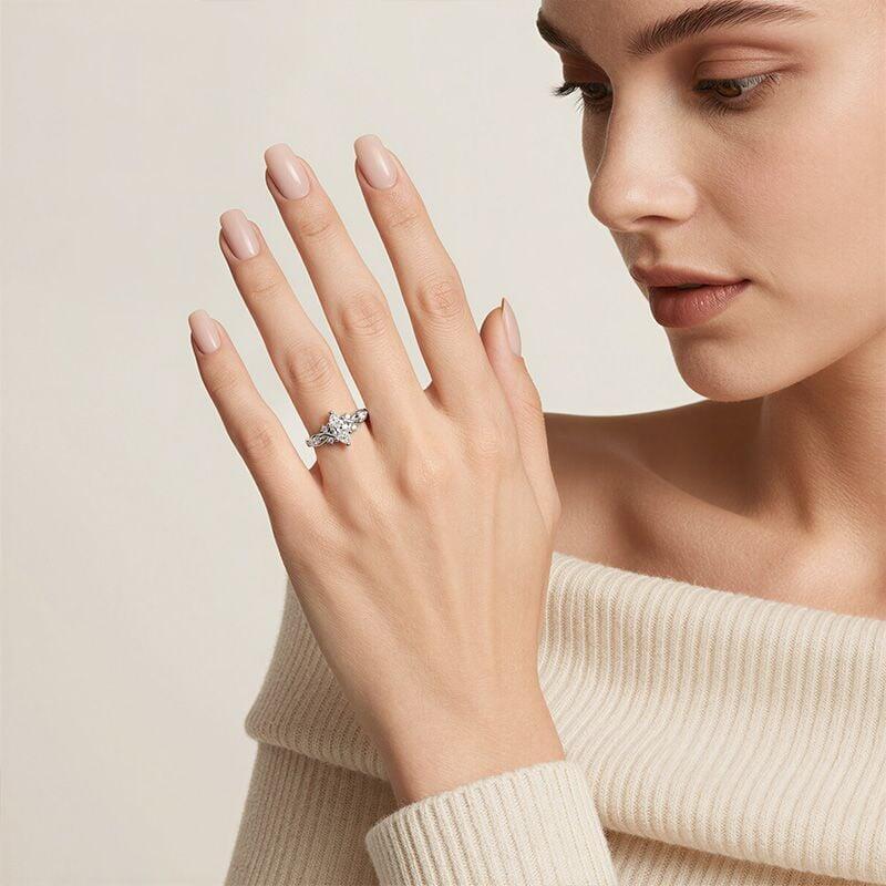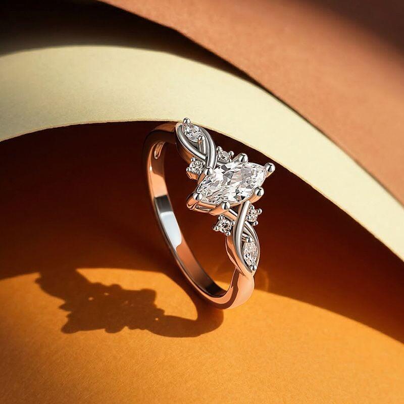 Crafted with exquisite artistry, this Jeulia Custom Marquise Cut Twisted Infinity Engagement Ring artfully blends the sharp elegance of the marquise cut with the eternal philosophy of the infinity symbol. The center stone features a slender marquise cut, whose distinctive tapered silhouette refracts light to create a dazzling brilliance reminiscent of a shooting star streaking across the sky; The band features a dynamic twisted design that forms a three-dimensional infinity symbol. Dual metal lines spiral around the stone from both sides, creating a continuous visual trajectory on the finger that symbolizes the eternal flow of love transcending time and space. Whether as a token of a proposal to mark a significant moment or as a statement of individuality for everyday wear, this unique infinity ring speaks volumes on your finger.