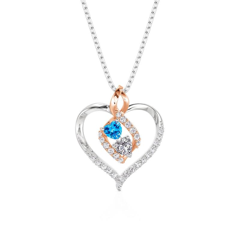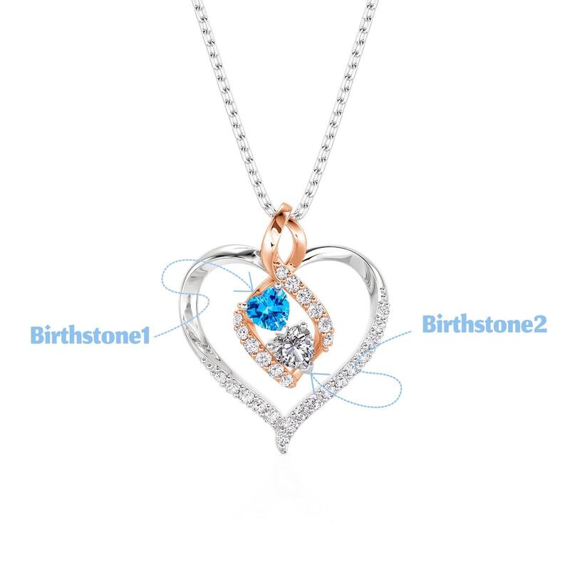 Jeulia Custom Two Tone Infinity Heart Necklace with 2 Birthstone