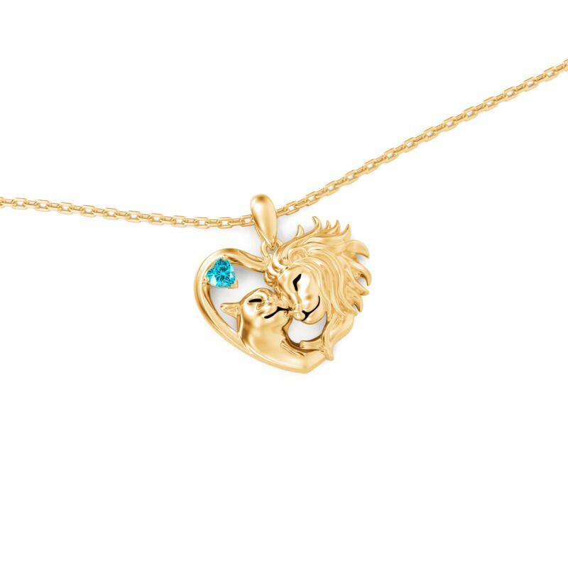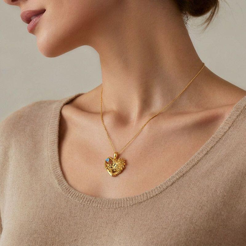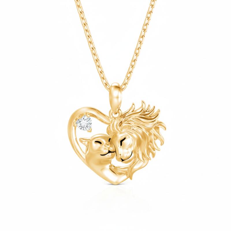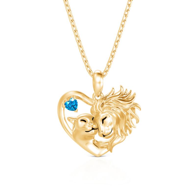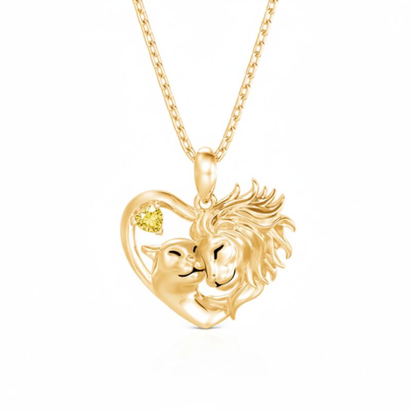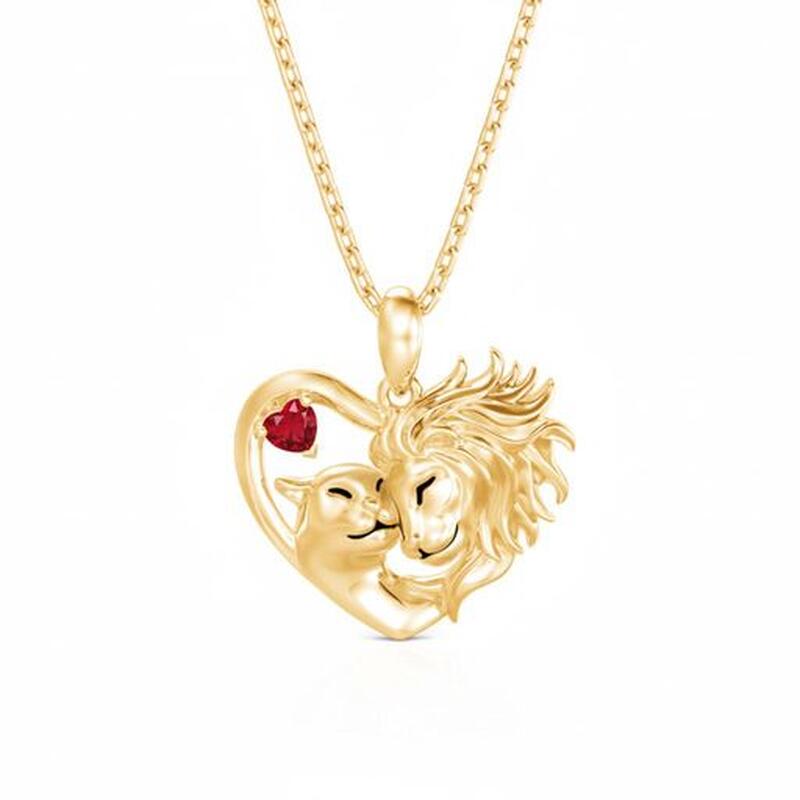 This Jeulia custom “Whisper Lion” birthstone necklace captures a tender scene of a lion and lioness nestled together within a heart-shaped silhouette. Intricately carved fur textures and affectionate poses evoke nature's gentle guardianship. A freely customizable birthstone heart-shaped center stone adorns the upper left corner, symbolizing love as steadfast as rock. Its brilliant glow harmoniously complements the surrounding lion silhouettes. The necklace chain features a minimalist design, allowing the heart pendant to drape naturally when worn. The tender embrace of the two creatures and the sparkling heart stone together convey profound themes of family, loyalty, and romance. Perfect as a gift to cherished ones, symbolizing protective affection, this gold lion necklace also serves as an extraordinary accessory for daily wear, showcasing individuality and warmth.