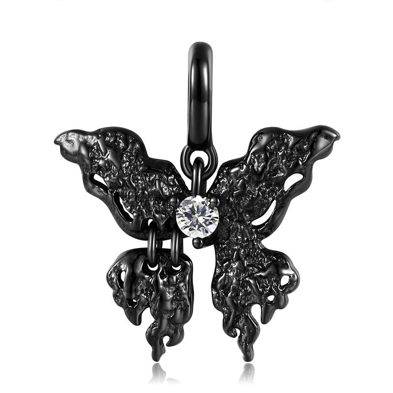 Like a nocturnal butterfly emerging from the shadows, this necklace encapsulates the allure of the night. Adorned with a pristine white gemstone, this exquisite piece is crafted from sterling silver and coated with a sleek black electroplating, embodying the essence of the dark aesthetic. Its intricate design showcases the delicate wings of the butterfly, meticulously crafted to evoke a sense of mystery and enchantment.