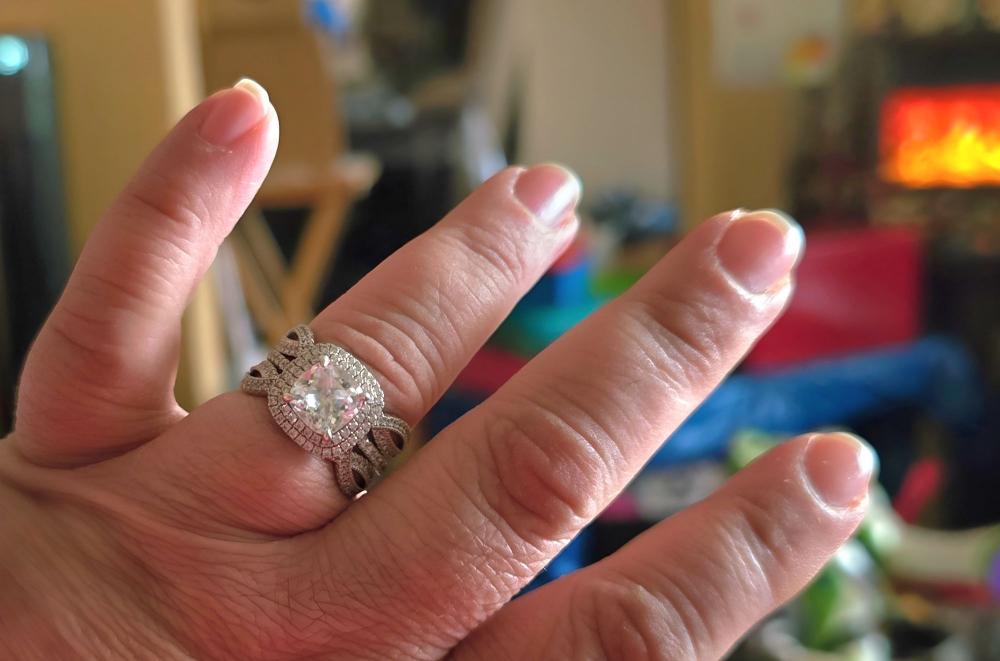 This nesting wedding ring set layers dual halos into a symphony of light—inner ring’s pavé gems ripple outward like moonlit waves, while the outer ring fans open for galas, transforming subtlety into celestial grandeur. Engrave coordinates along the inner curve, a whispered reminder that love’s brilliance deepens when layers align, whether clasped close for anniversaries or parted to let each halo wedding ring its own aria of radiance.