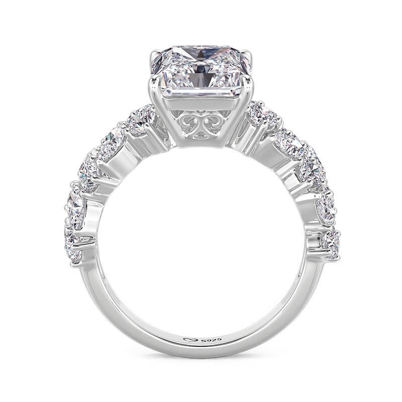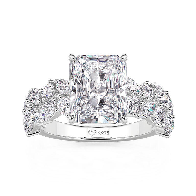 Embrace unparalleled elegance with the Jeulia Double Row Cluster Radiant Cut Engagement Ring. Crafted to captivate, this cluster engagement ring showcases a striking radiant - cut center stone — its elongated, faceted design maximizes light reflection for extraordinary brilliance. Flanking the centerpiece, the double - row cluster shank is a masterpiece of precision. It artfully combines marquise - cut and round - cut gemstones,these stones work in harmony to amplify sparkle, creating a dazzling frame that draws the eye to the radiant - cut center. This eternity ring balances bold glamour with timeless sophistication. Perfect for engagements or as a statement of enduring love.