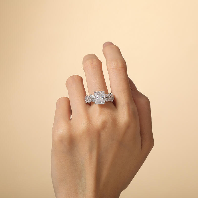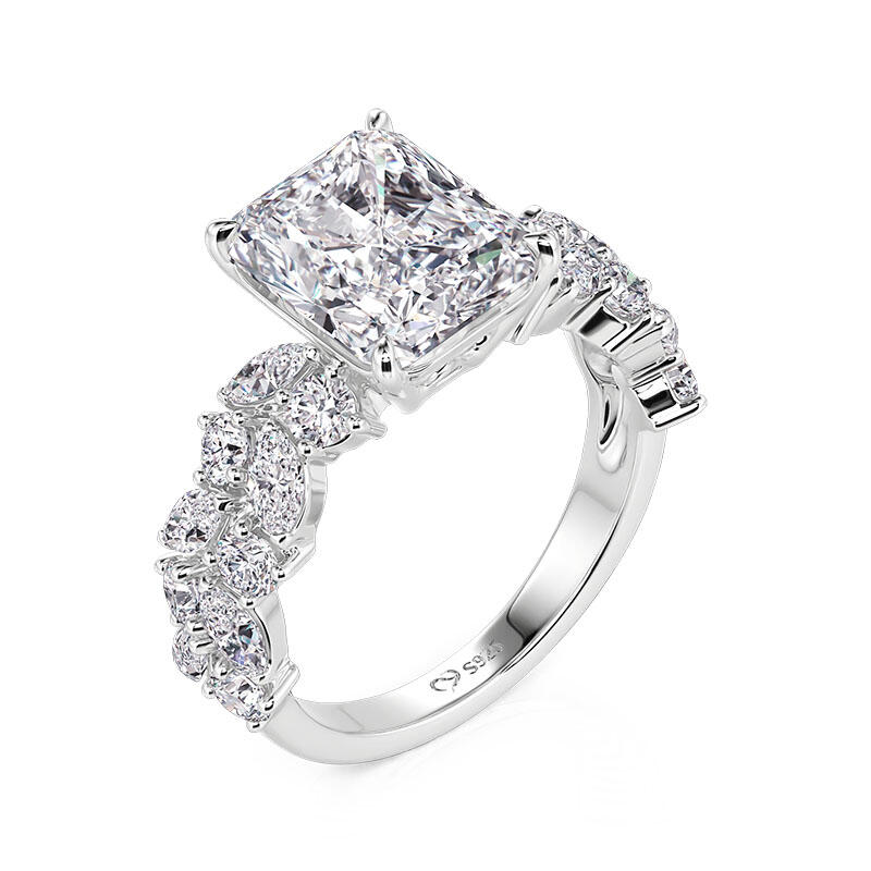 Jeulia Double Row Cluster Radiant Cut Engagement Ring