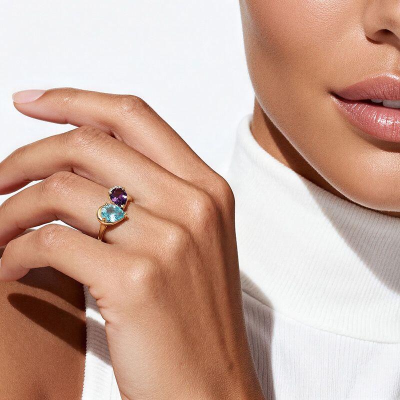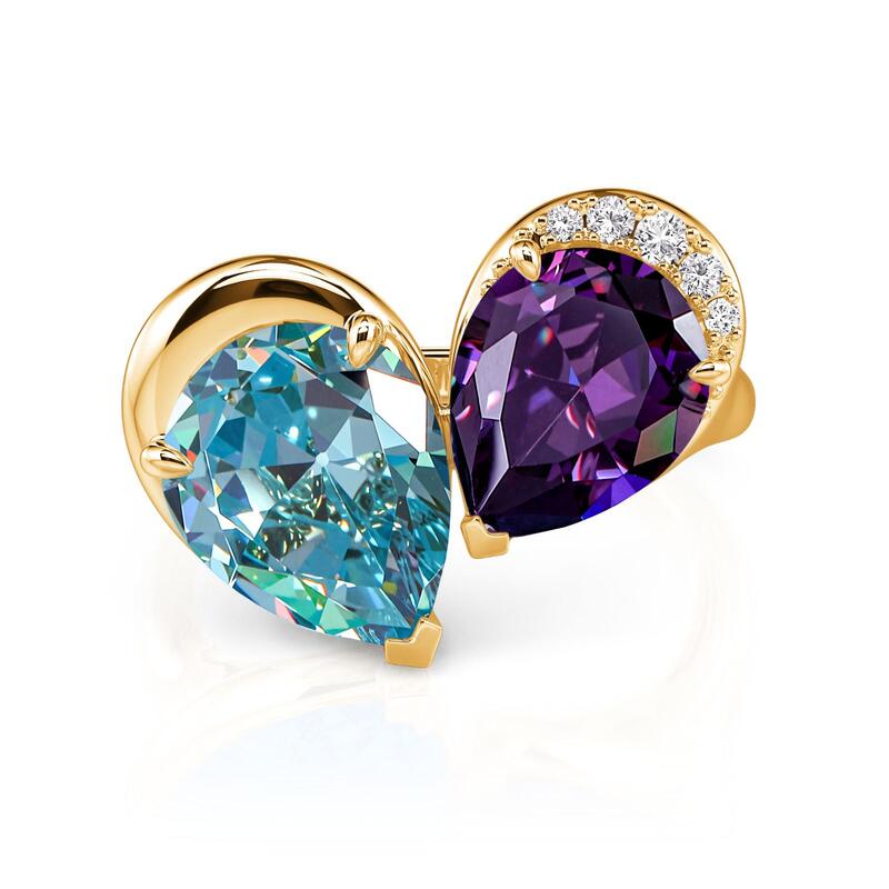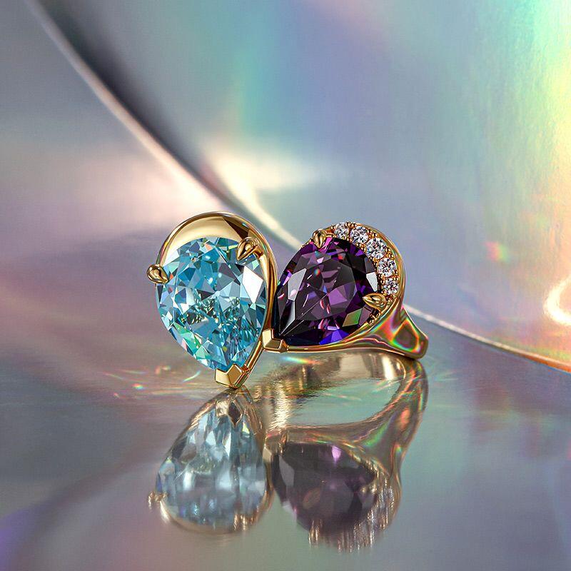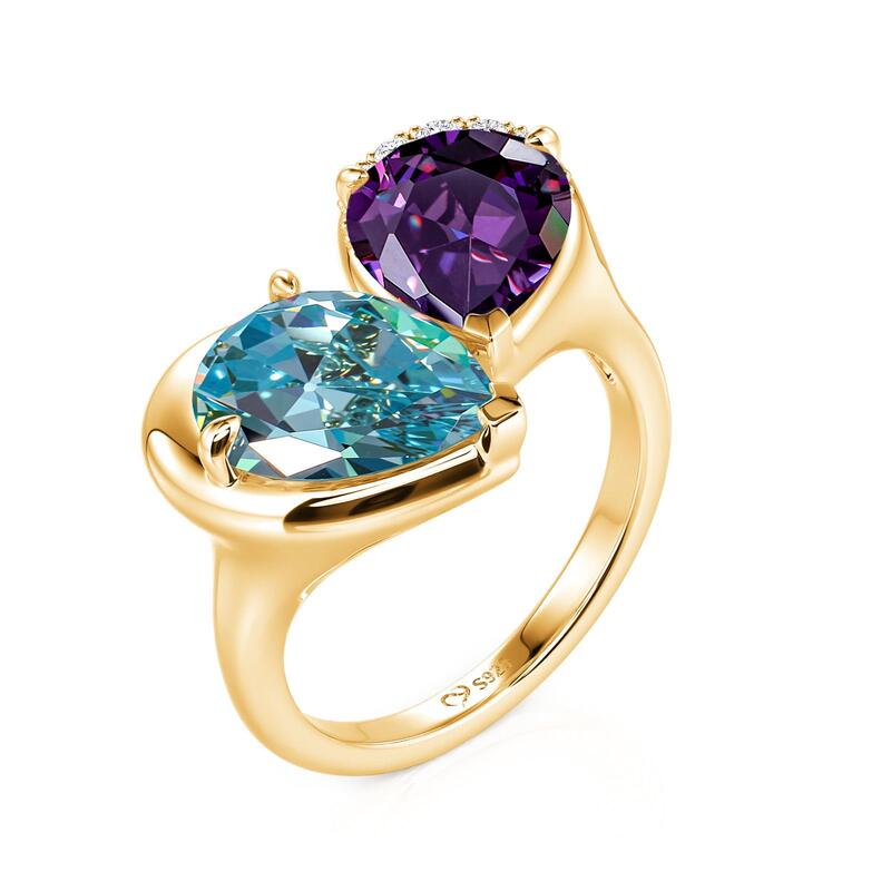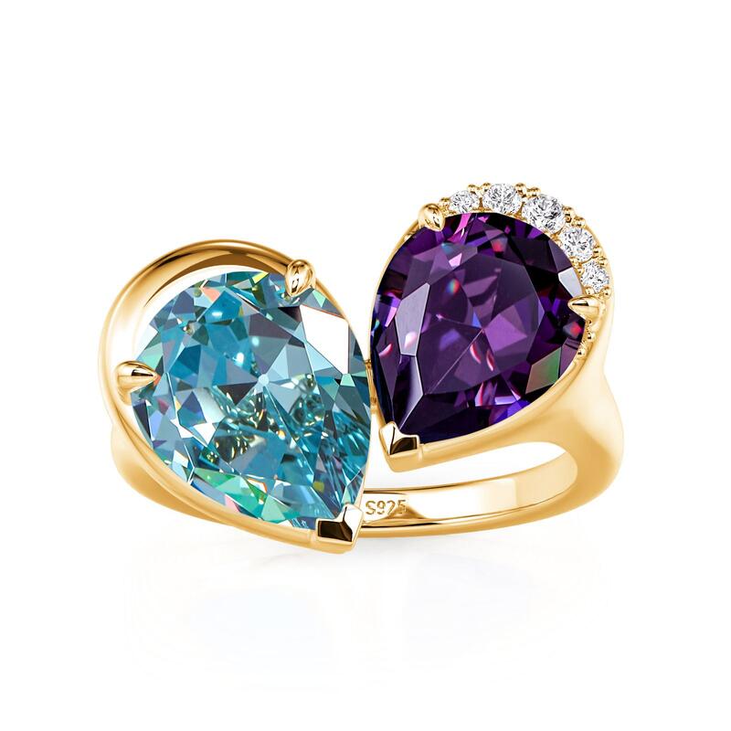 The Jeulia Elegance Double Pear Toi et Moi Cocktail Ring is a stunning expression of style and sophistication. Featuring two exquisite pear-cut stones, this toi et moi ring captures attention with its vibrant color combination and unique design. Crafted with a luxurious finish, the ring showcases a beautiful interplay of colors—an enchanting blue stone paired with a deep purple one. The elegant design is enhanced by sparkling accents that add a touch of glamour. This cocktail ring is perfect for making a statement at any event or as a distinctive everyday piece. The two stone design symbolizes unity and connection, making it an ideal gift for a loved one. Celebrate your unique bond with this pear cut two stone ring that reflects your personality and flair.