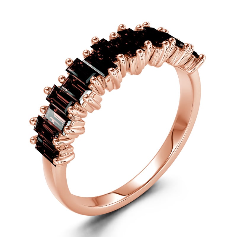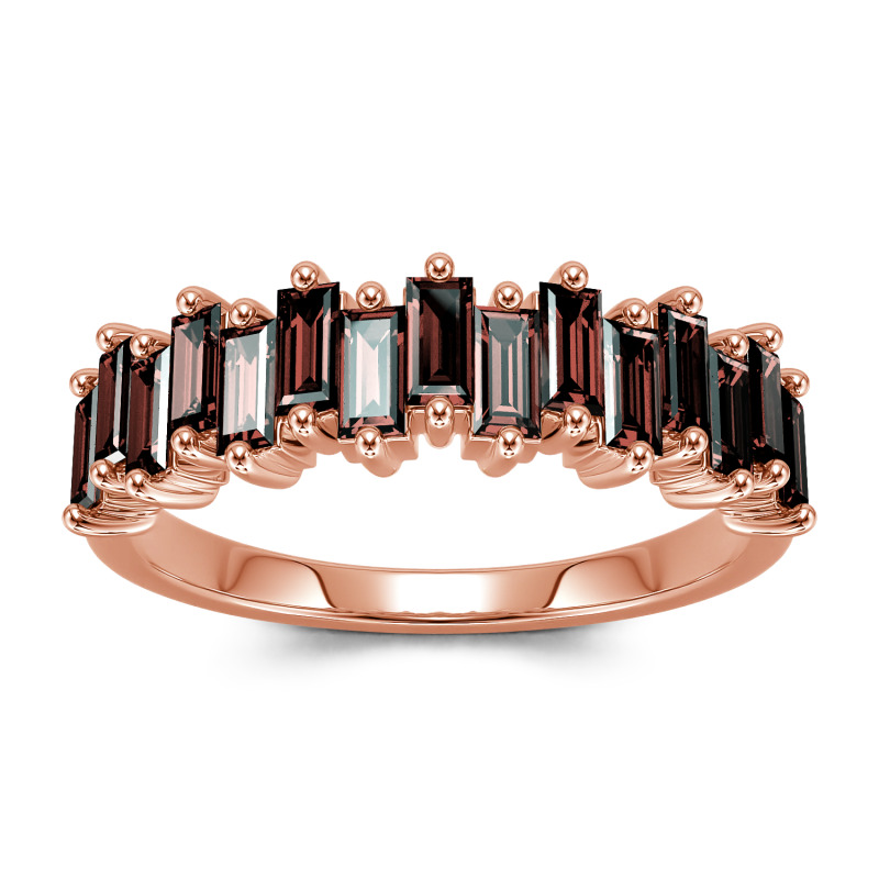 Promise to love, honor and cherish her with this charming moissanite wedding band. An alternating wave of emerald-cut stones dazzle along one third of the band for a modern and lustrous look. Perfect for all-day wear, the inside of the shank is rounded for comfort. On your wedding day or wedding anniversary, present her with a band that represents an eternity of love.