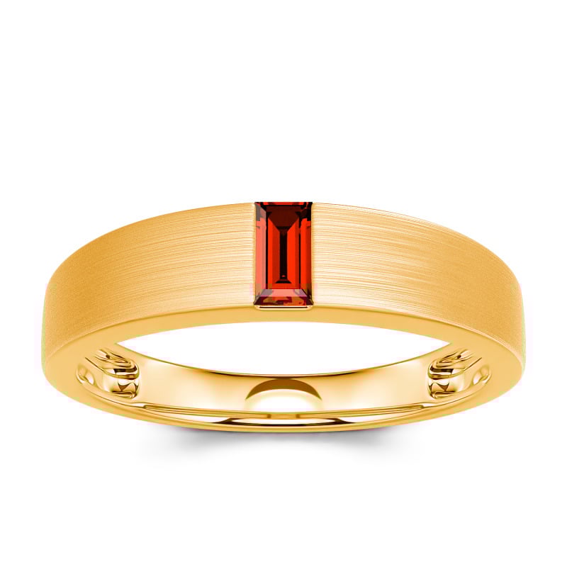 Use this charming band to celebrate your loving commitment and seal your vows in style. With the liberal brushed finish, the dashing men’s band features an emerald-cut shimmering stone encapsulated in the refined band. Radiant with shining solitaire, this comfort-fit wedding band is a symbol of faithful and everlasting love, and its generous design never succumbs to trends.