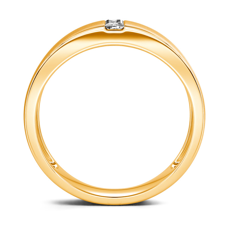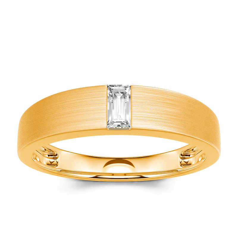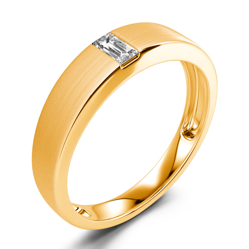 Use this charming band to celebrate your loving commitment and seal your vows in style. With the liberal brushed finish, the dashing men’s band features an emerald-cut shimmering stone encapsulated in the refined band. Radiant with shining solitaire, this comfort-fit wedding band is a symbol of faithful and everlasting love, and its generous design never succumbs to trends.