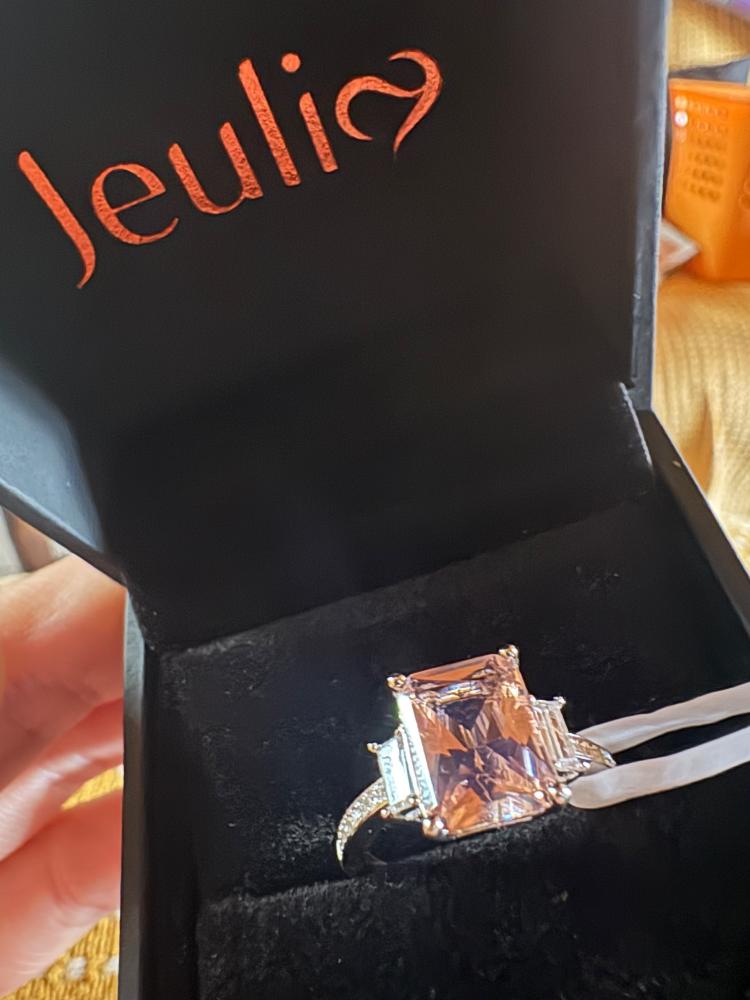 Jeulia Emerald Cut Synthetic Morganite Sterling Silver Ring