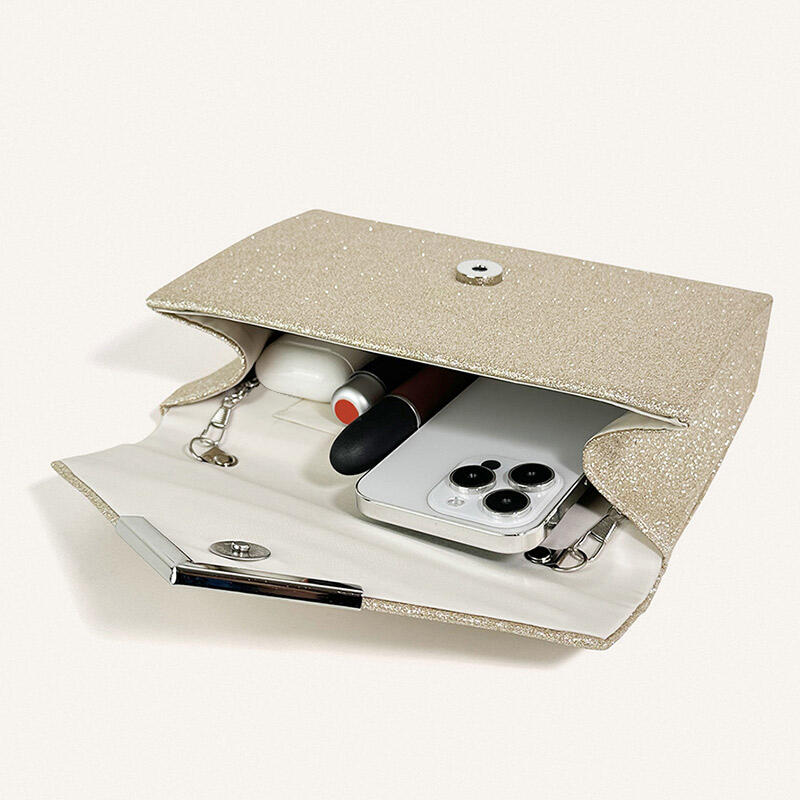 Glitter clutch bag designed with shiny sequins fabric material and detachable chain strap,You can hold this clutch purse in your hand or you can also use it as a shoulder bag. Glitter clutch purse easy to match your shoes, Princess style dress,or nail polish as well weddings, date nights, or prom, and cocktail party ,make way for your chic and imppeccable style.