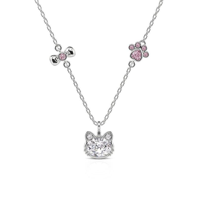Jeulia Fashion Cat Necklace with Paw Print and Bow Links