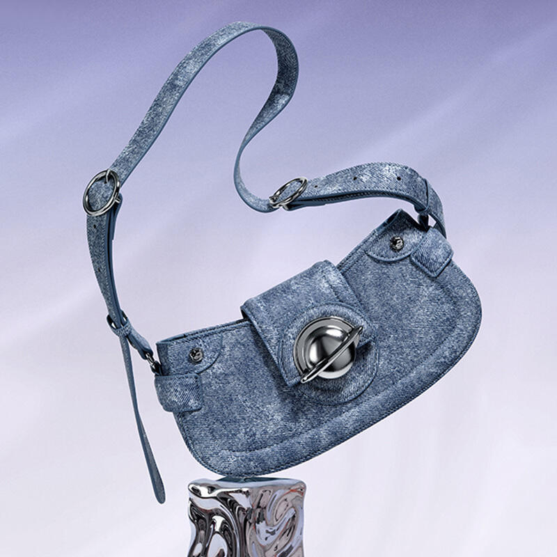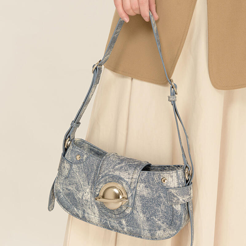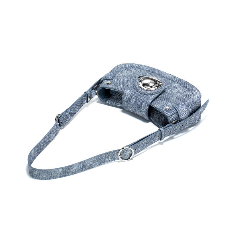 A bag that is sure to please those with a penchant for minimalist styles. The highlights of this understated piece are the metallic accents and clean lines, which work to create a cohesive and visually pleasing aesthetic. The compact interior is spacious enough to fit your daily belongings, while the magnetic closure keeps them secure. Plus points for the pristine denim colourway that will match any outfit with immaculate ease.