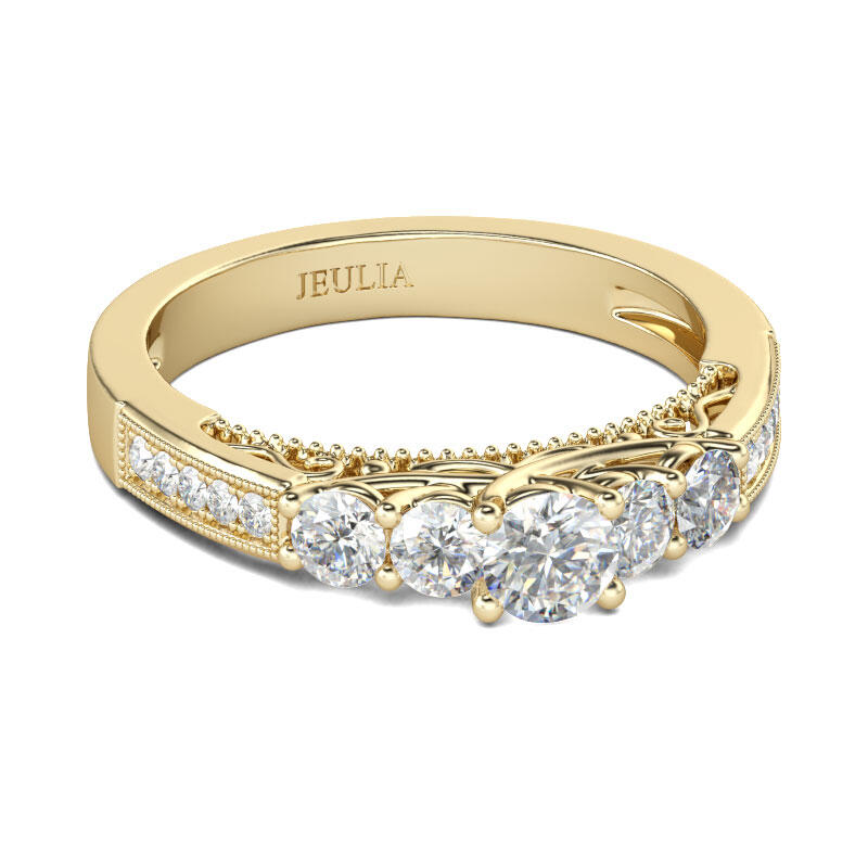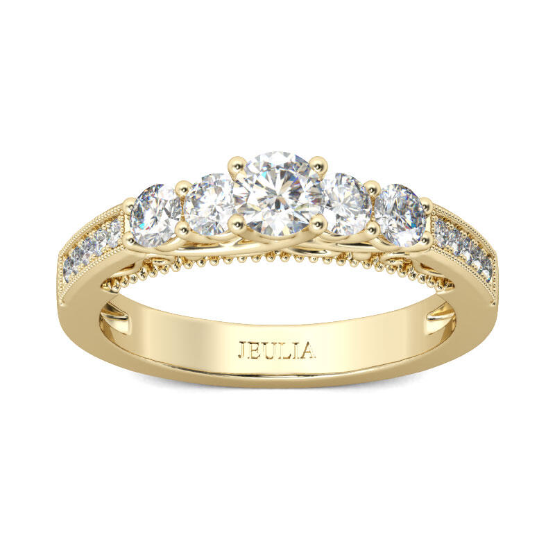 Jeulia Five Stone Round Cut Sterling Silver Ring