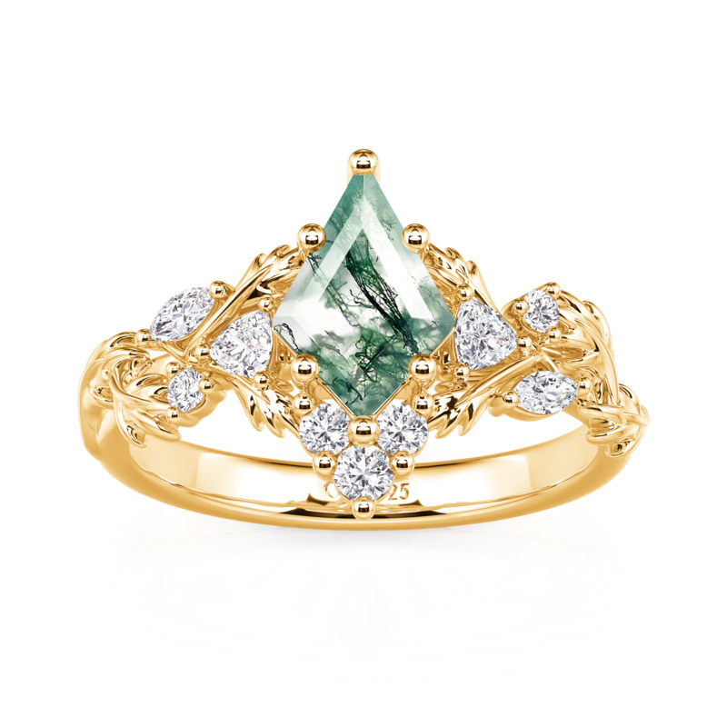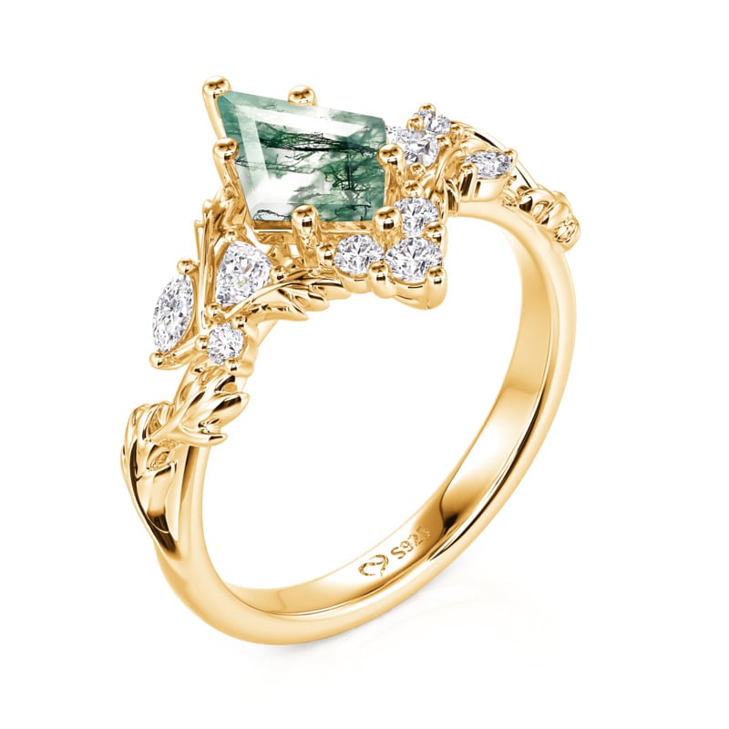 Jeulia Gold Leaf Kite Cut Moss Agate Engagement Ring