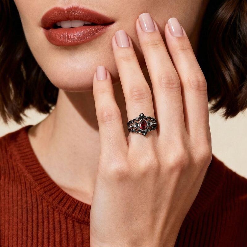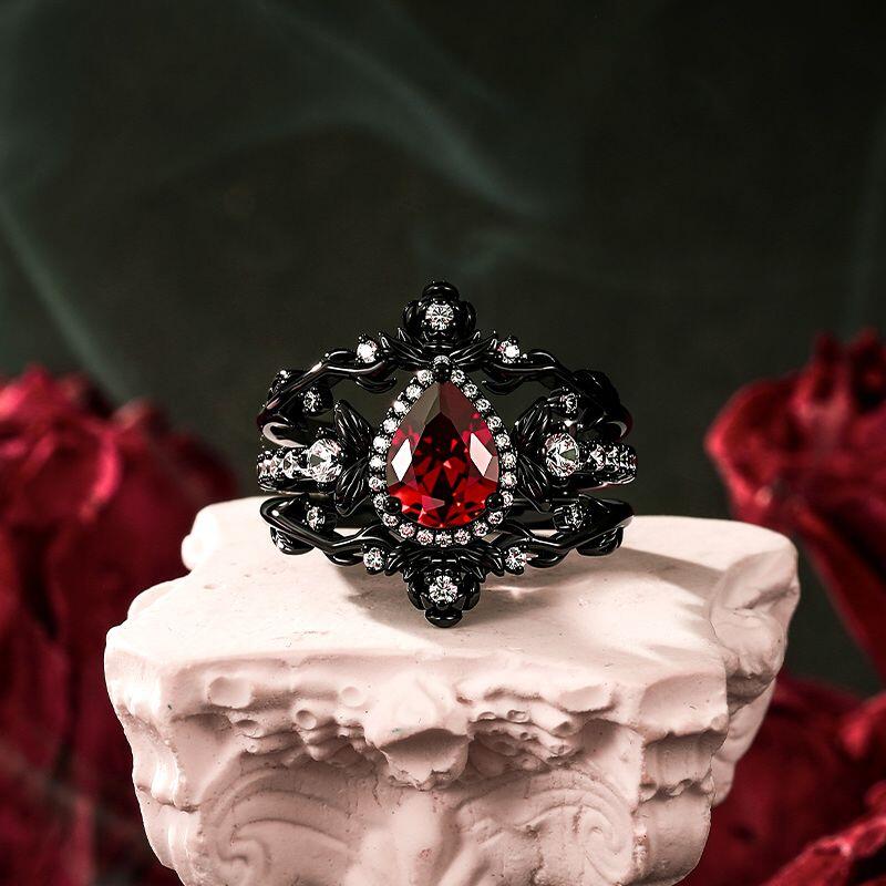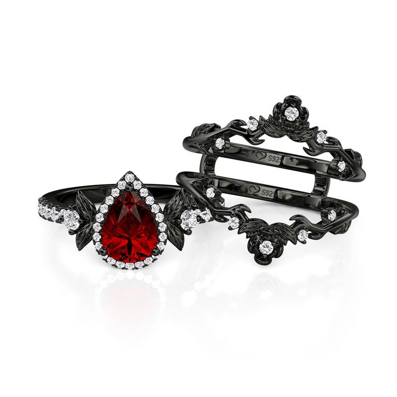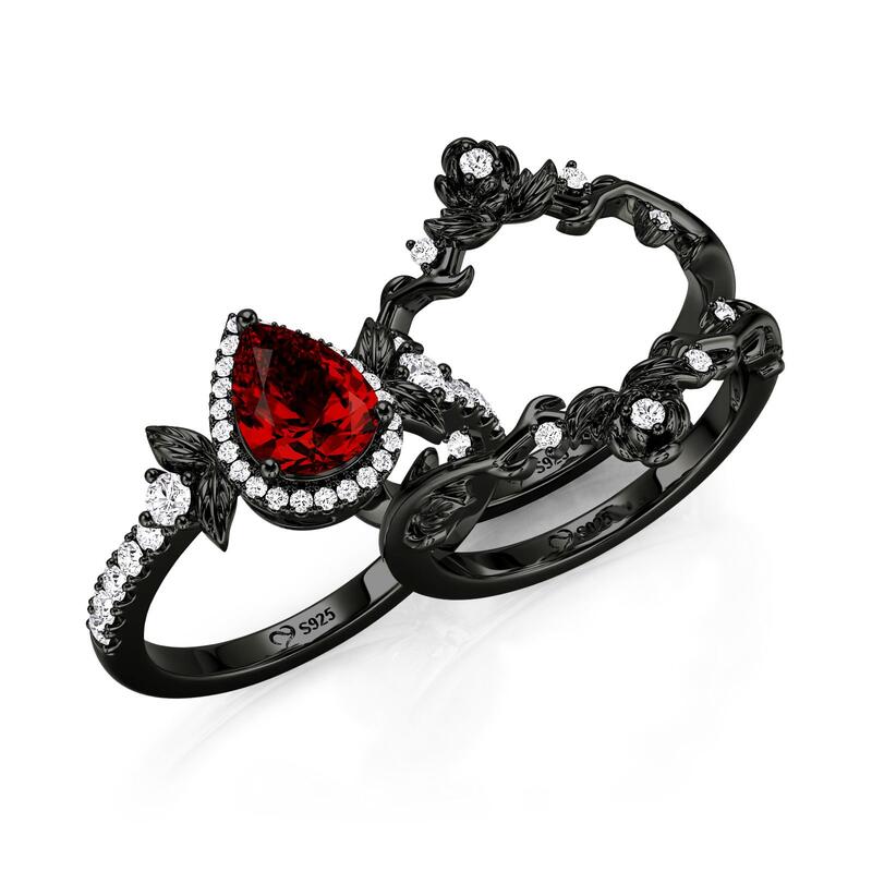 Jeulia Gothic Black Floral Pear Cut Engagement Ring Set