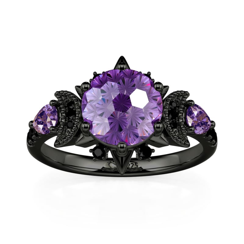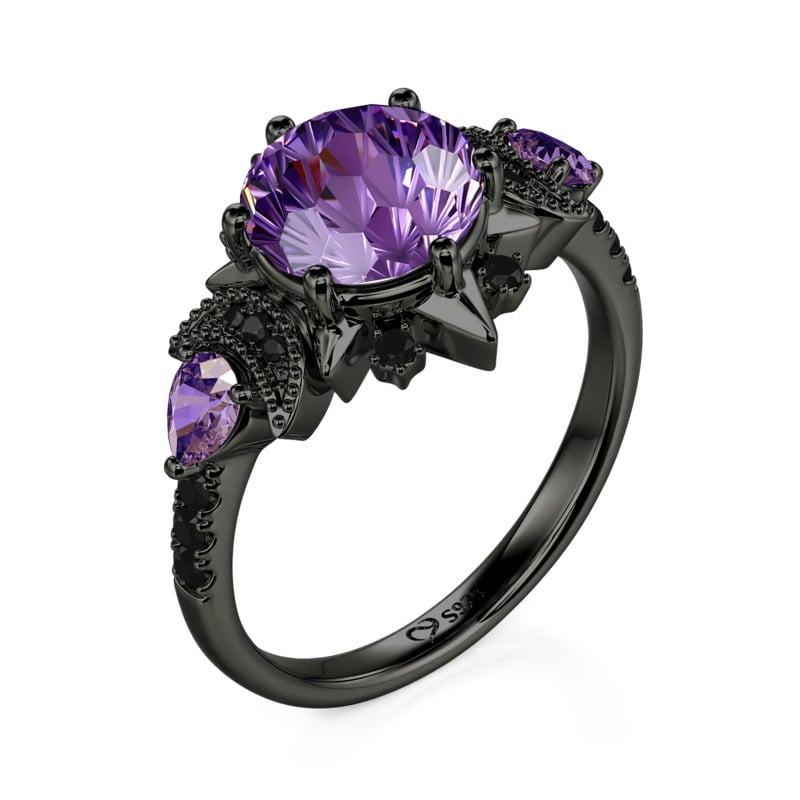 Jeulia Gothic Black Moon Star Purple Firework Cut Ring