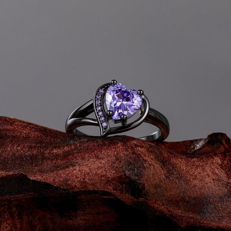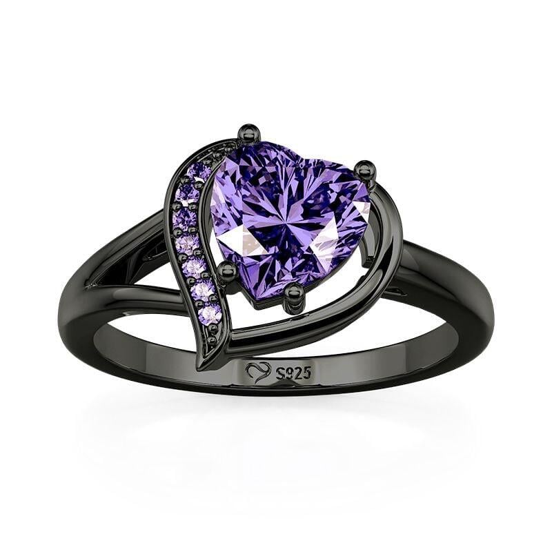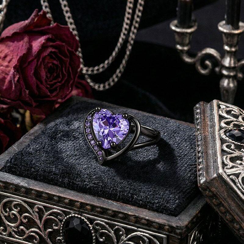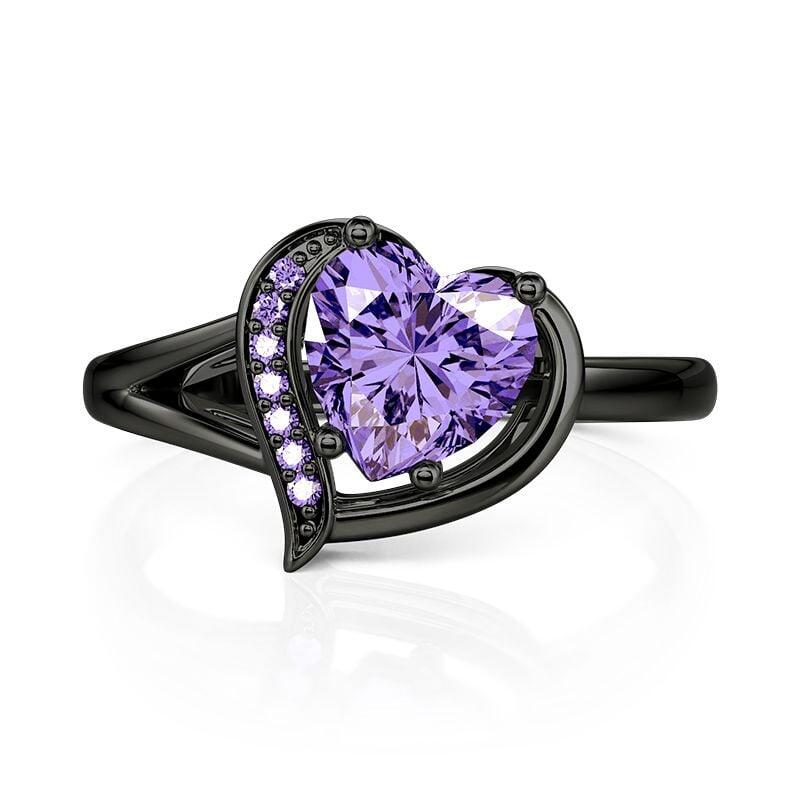 Jeulia Gothic Black Split Shank Purple Heart Cut Fashion Ring