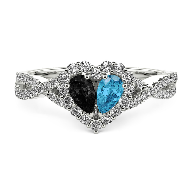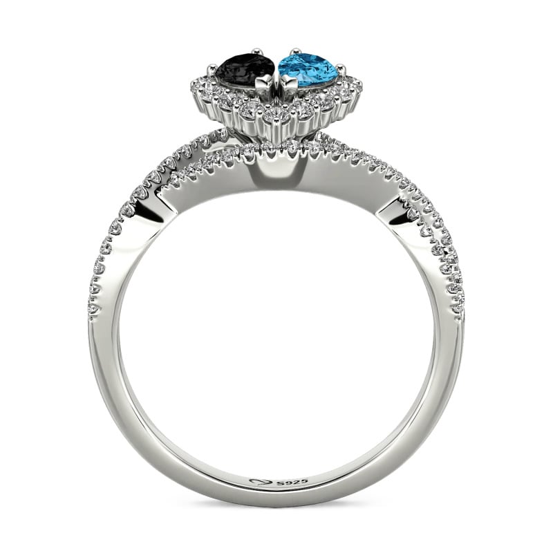 Jeulia Halo Double Pear Cut Custom Heart Promise Ring with Twist Band