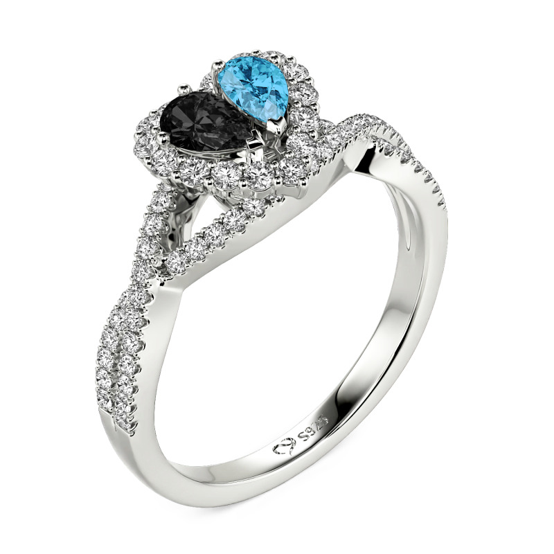 This halo double pear cut custom heart promise ring with twist band features a unique two-stone centerpiece, with two pear-cut gemstones nestled together, outlining an exquisite heart-shaped silhouette, like two hearts intertwined to speak of eternal love. The body of the custom promise ring is inspired by an elegant twisting design, surrounded by shimmering micro-set stones, as bright as a river of stars, giving the ring a flowing sense of hierarchy and dynamic beauty. The halo heart twist promise ring's metal color and stone color can be customized, with every detail showing craftsmanship and every ray of light telling a unique story. Wearing it is like putting romance and elegance on your fingertips, which will make you exude a distinctive charm whether it is an important moment or a daily companion.