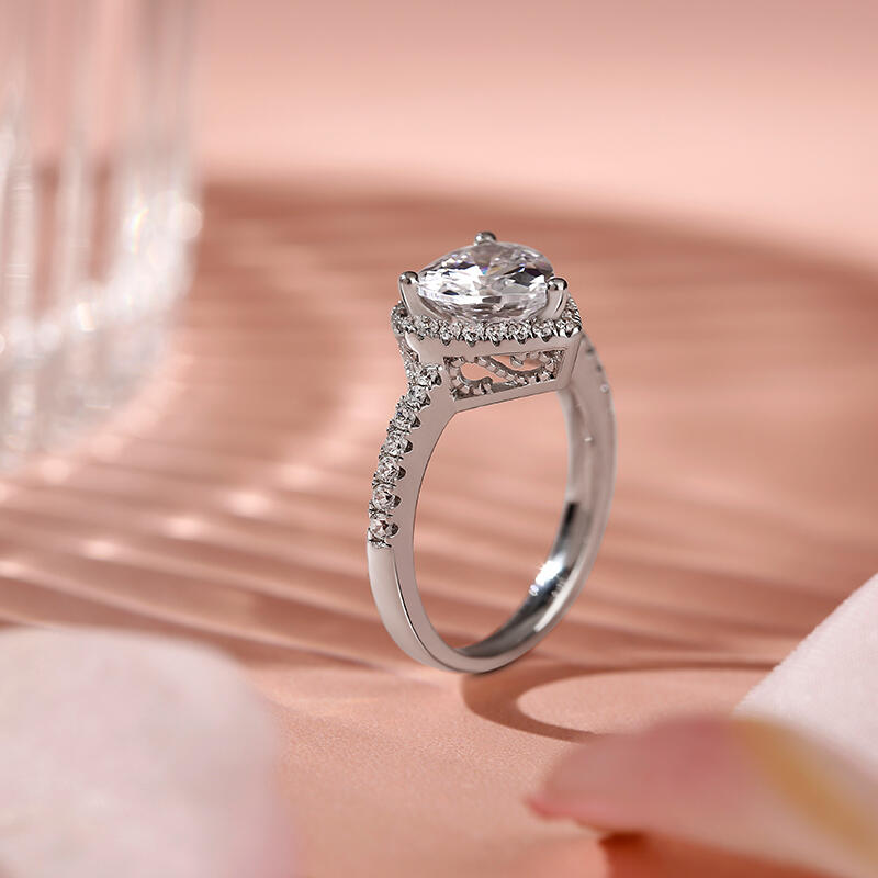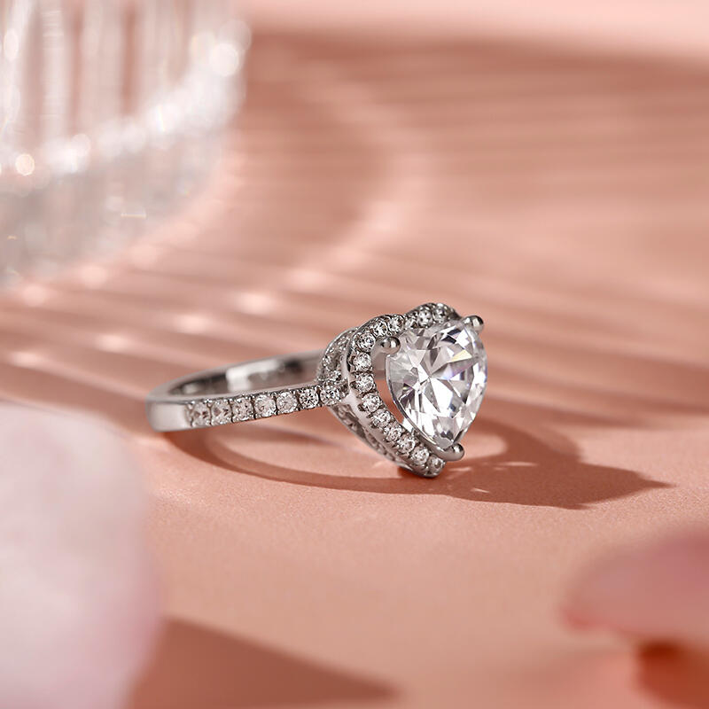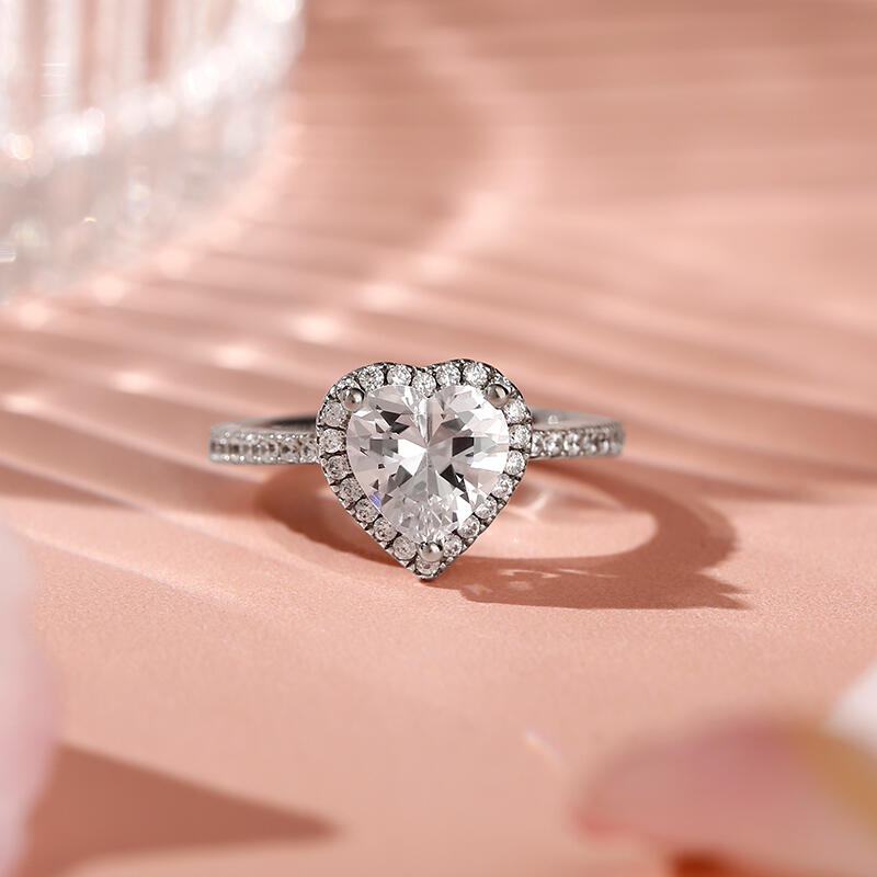 Jeulia Halo Heart Cut Sterling Silver Ring