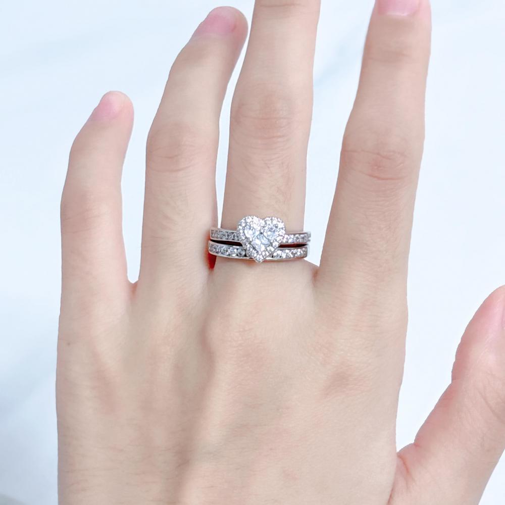 Jeulia Halo Heart Shaped Promise Ring Set
