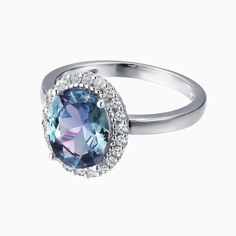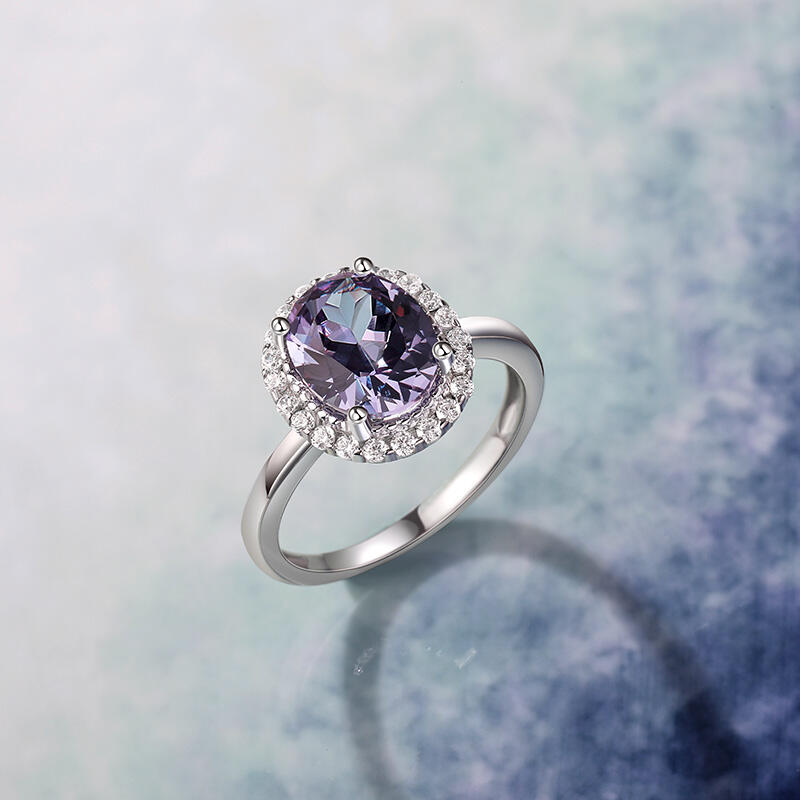 Jeulia Halo Oval Alexandrite Engagement Ring Sterling Silver