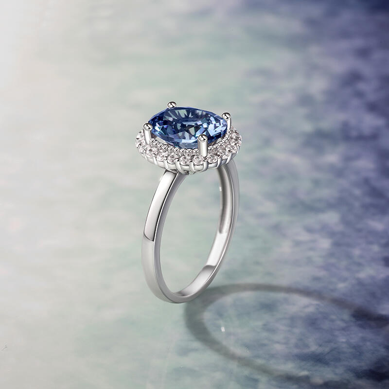Mystery and transformation come together in this alexandrite ring. Alexandrite is known for its fascinating color-changing effect, appearing as a clear green hue during the day and changing to a deep purplish-red at night under the light, like the alternation of day and night, revealing an unparalleled and unique beauty. The halo engagement ring uses exquisite craftsmanship to set this precious gemstone on the elegant band, highlighting the noble temperament. Each time you wear this oval cut engagement ring, it is a wonderful variation of light and color that makes you the center of attention.