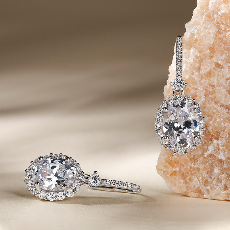 Jeulia Halo Oval Cut Sterling Silver Drop Earrings