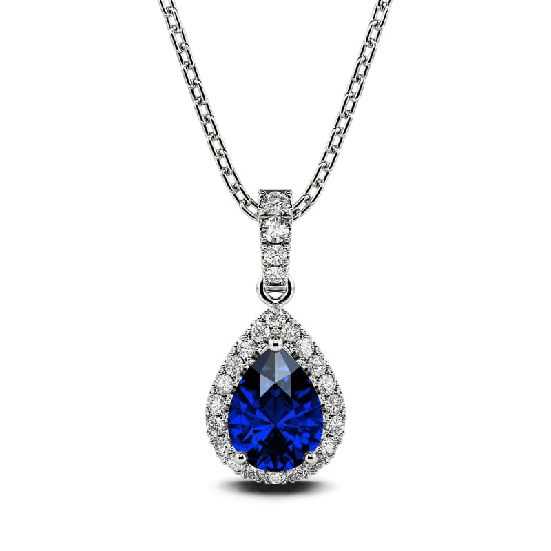 Jeulia Halo Pear Cut Sterling Silver Necklace