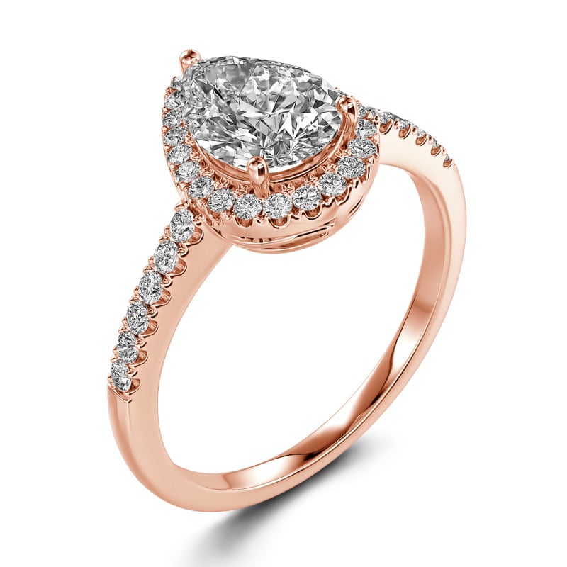 Jeulia Halo Pear Cut Sterling Silver Ring