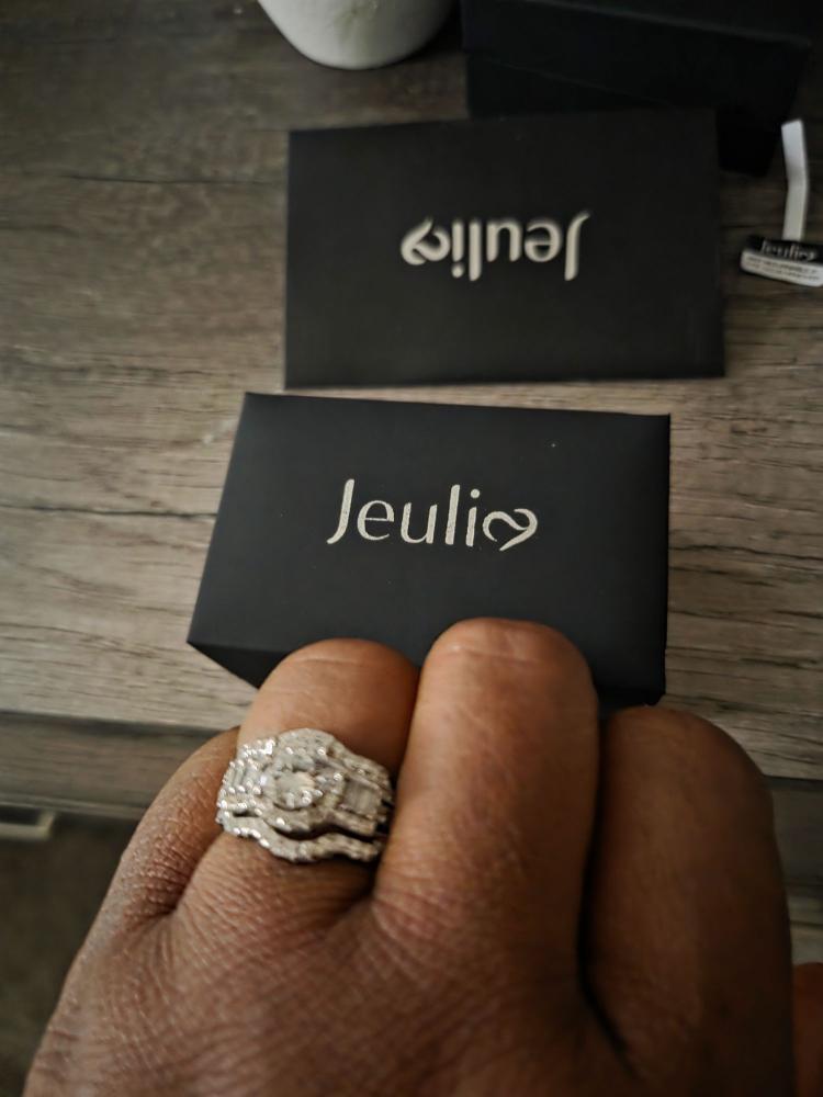 Jeulia Halo Round Cut Sterling Silver Ring Set
