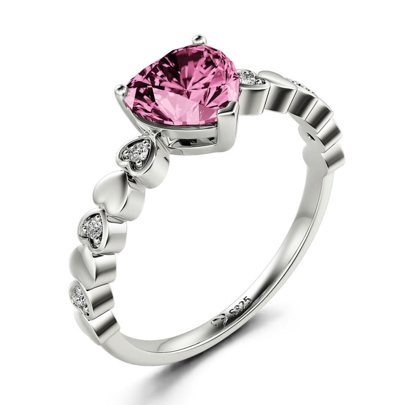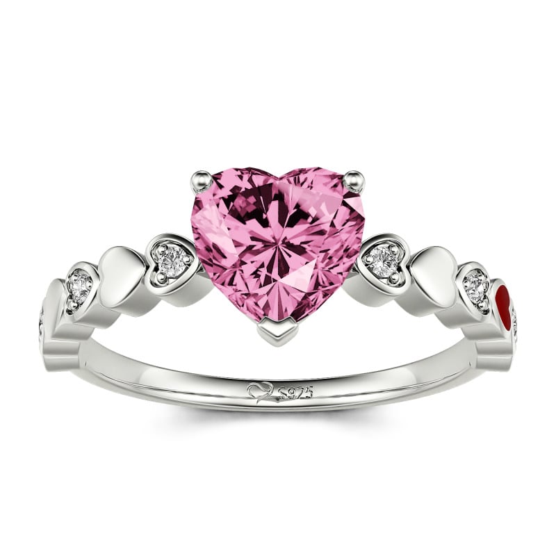 Jeulia Heart Shank Heart Cut Enamel Sterling Silver Engagement Ring