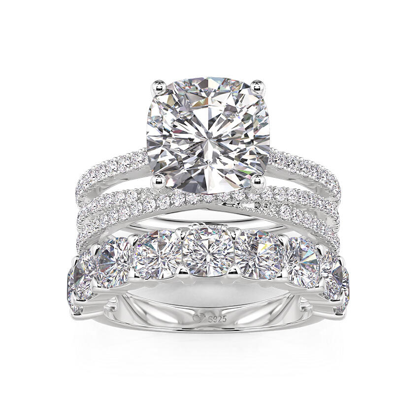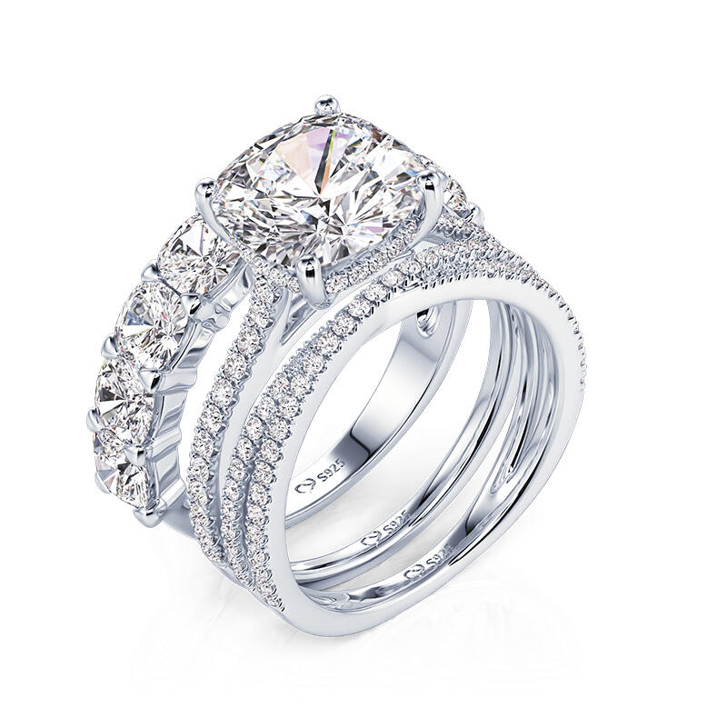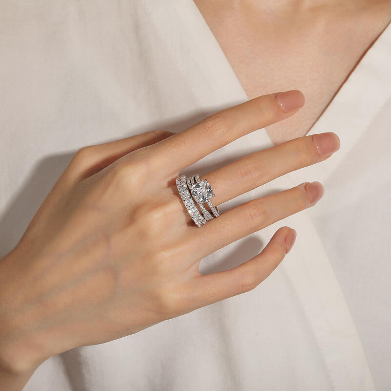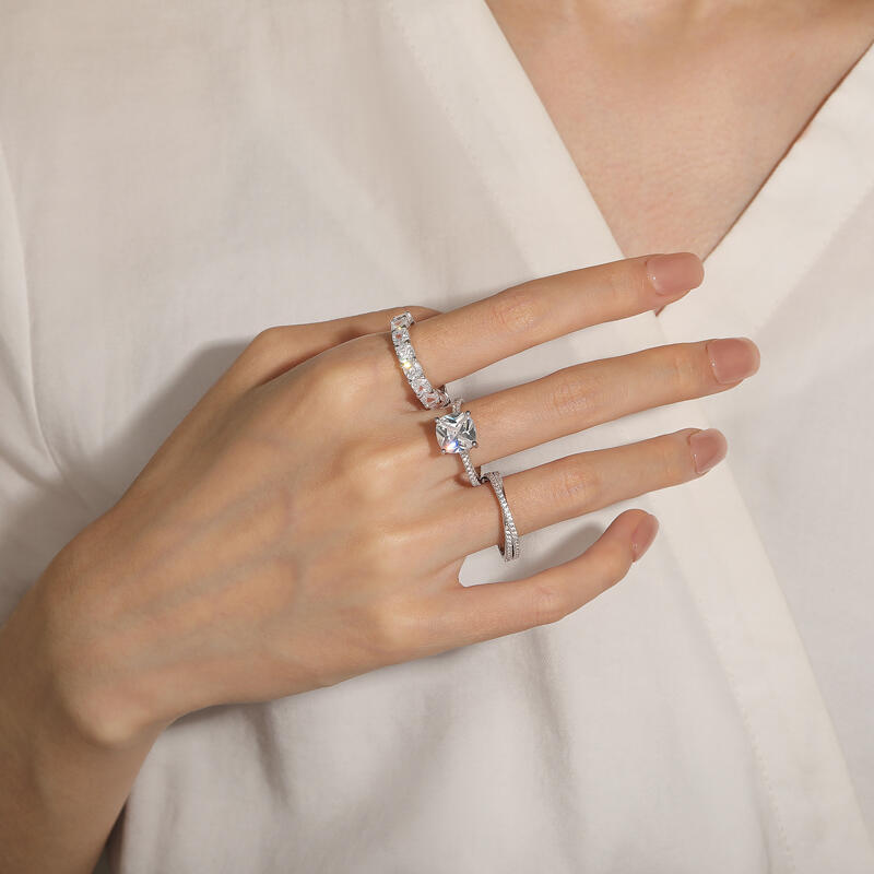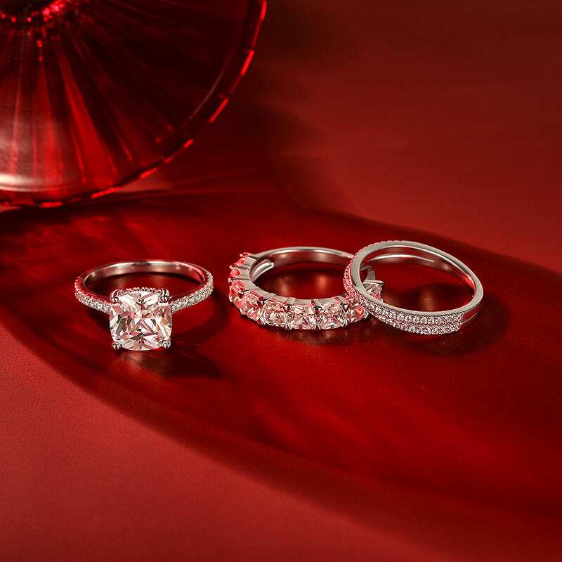 Jeulia Hidden Halo Glitter Radiant Cut Ring Set 3PCS