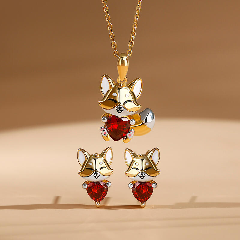 Jeulia Hug Me "Baby Fox" Heart Cut Sterling Silver Jewelry Set