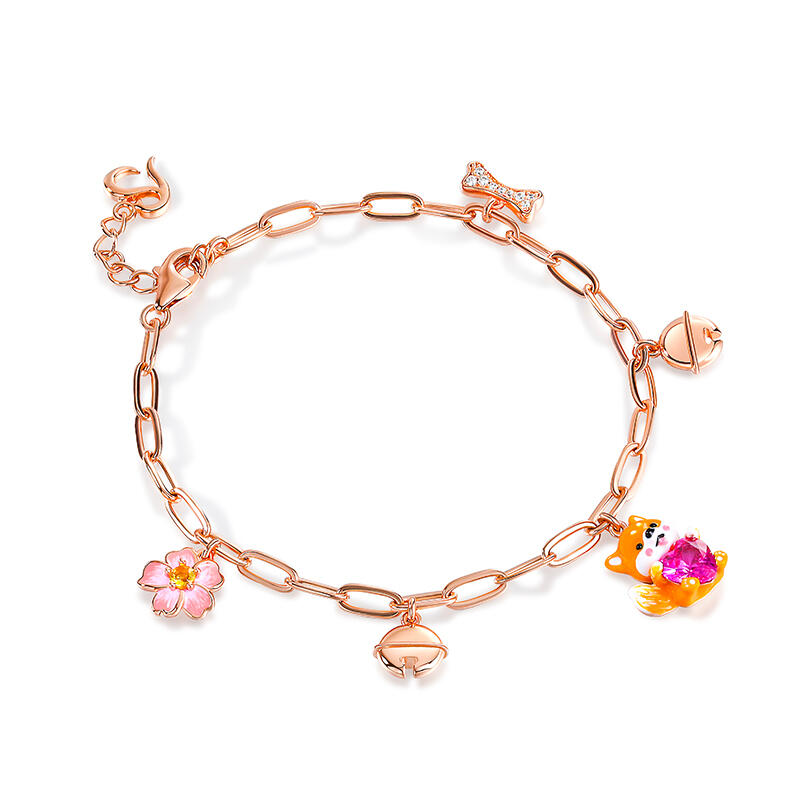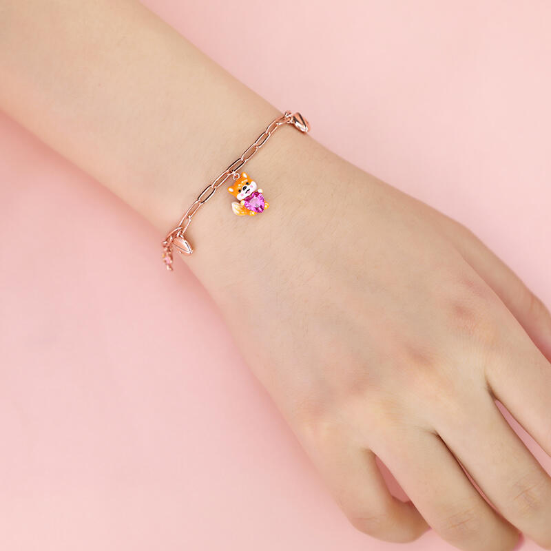 This Jeulia Hug Me® bracelet is crafted from 925 sterling silver. An adorable Shiba Inu is vividly captured hugging a sparkling red heart-cut gemstone. The Shiba Inu has a lively and cute expression, and the small accessories add to the smart feeling. This is a unique gift for anyone who loves cute Shiba Inu dogs. You'll find more cute and creative designs in our Hug Me® collection.