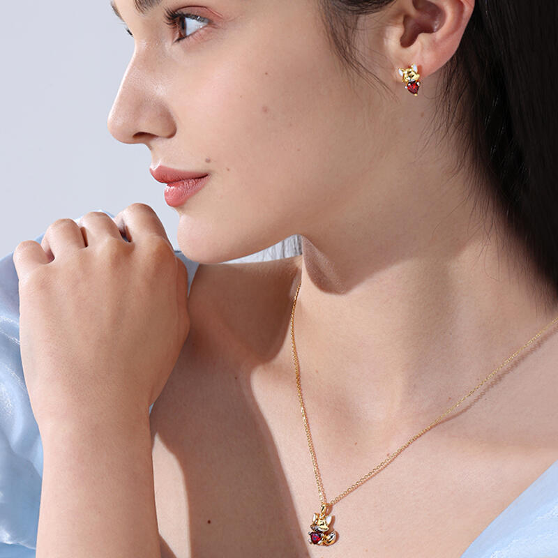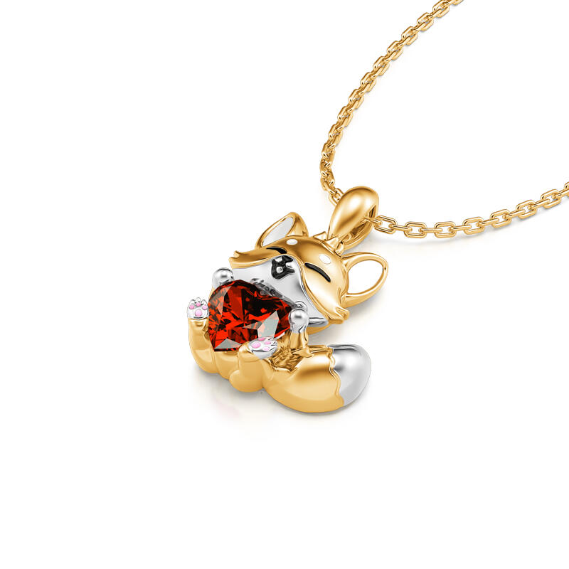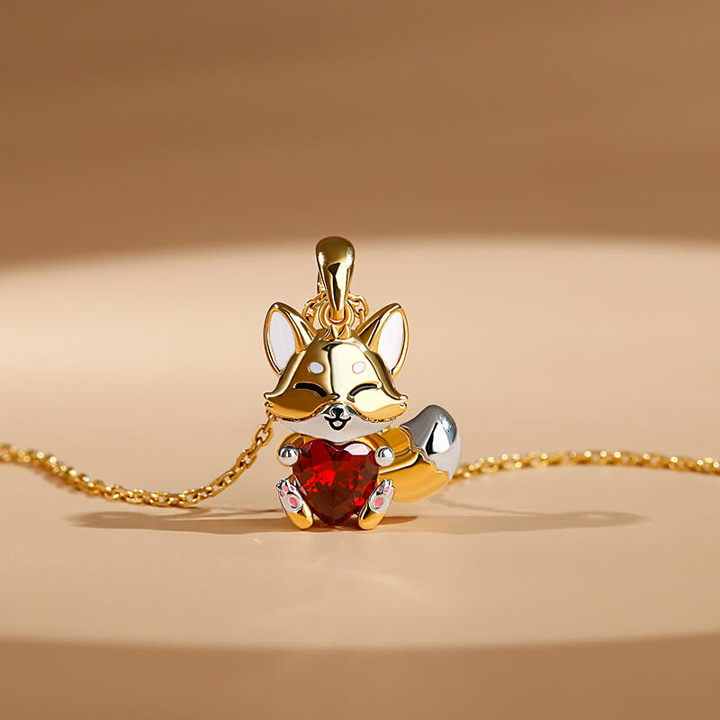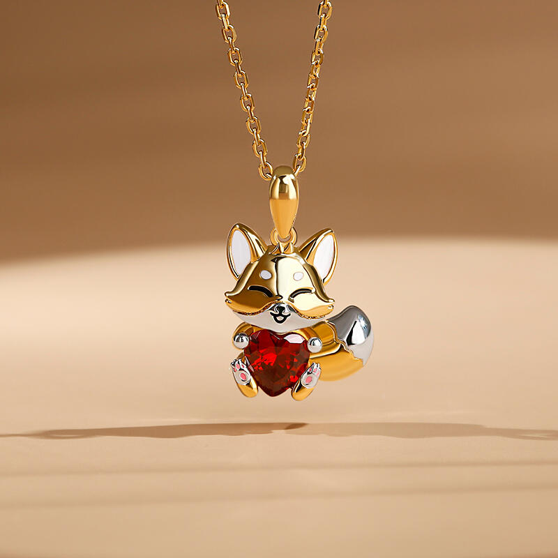 Jeulia Hug Me "Baby Fox" Heart Cut Sterling Silver Necklace