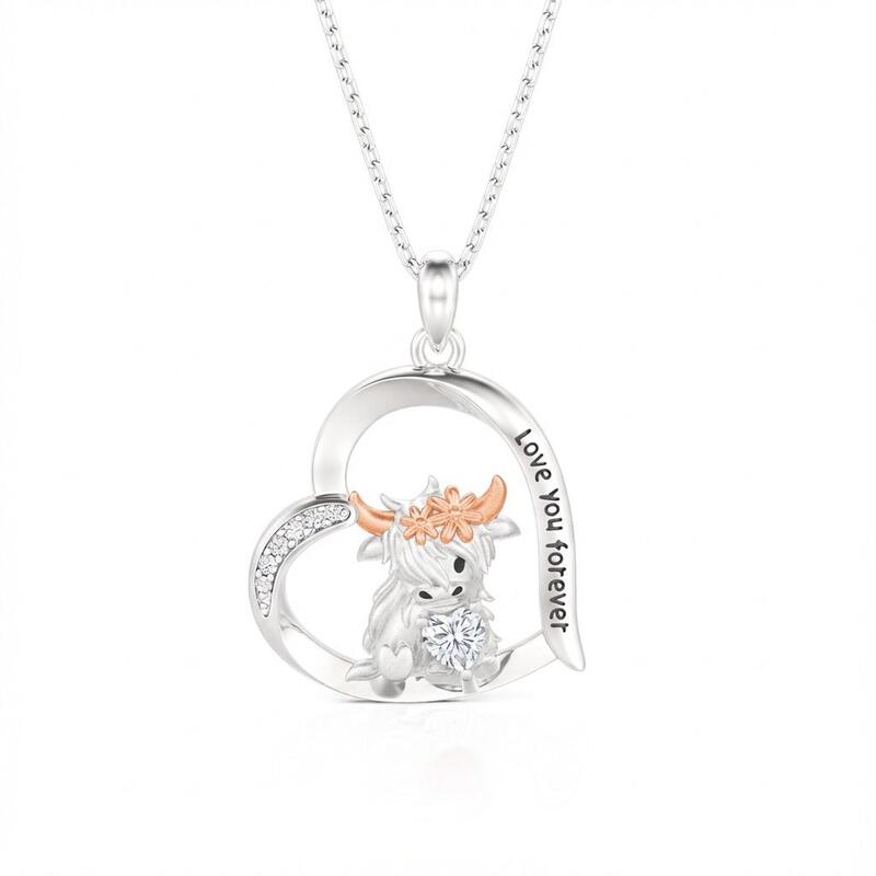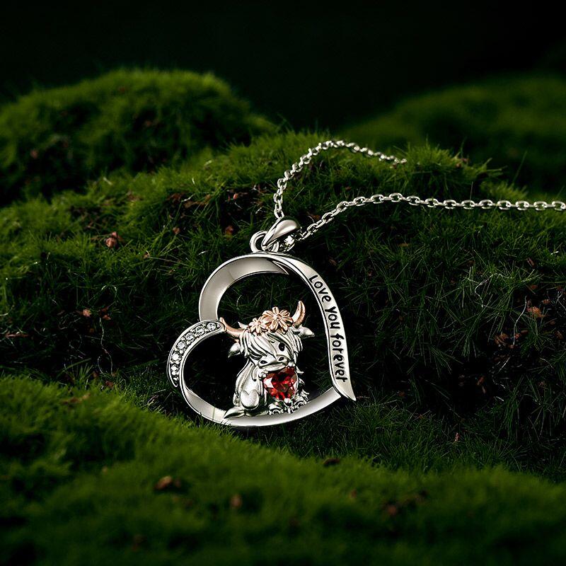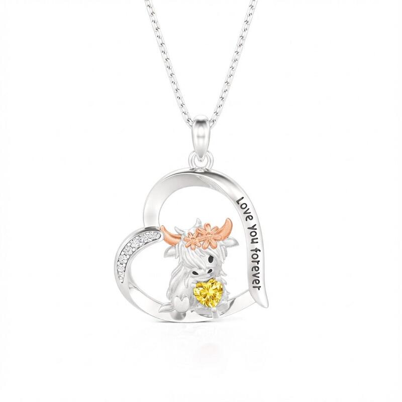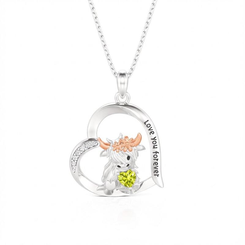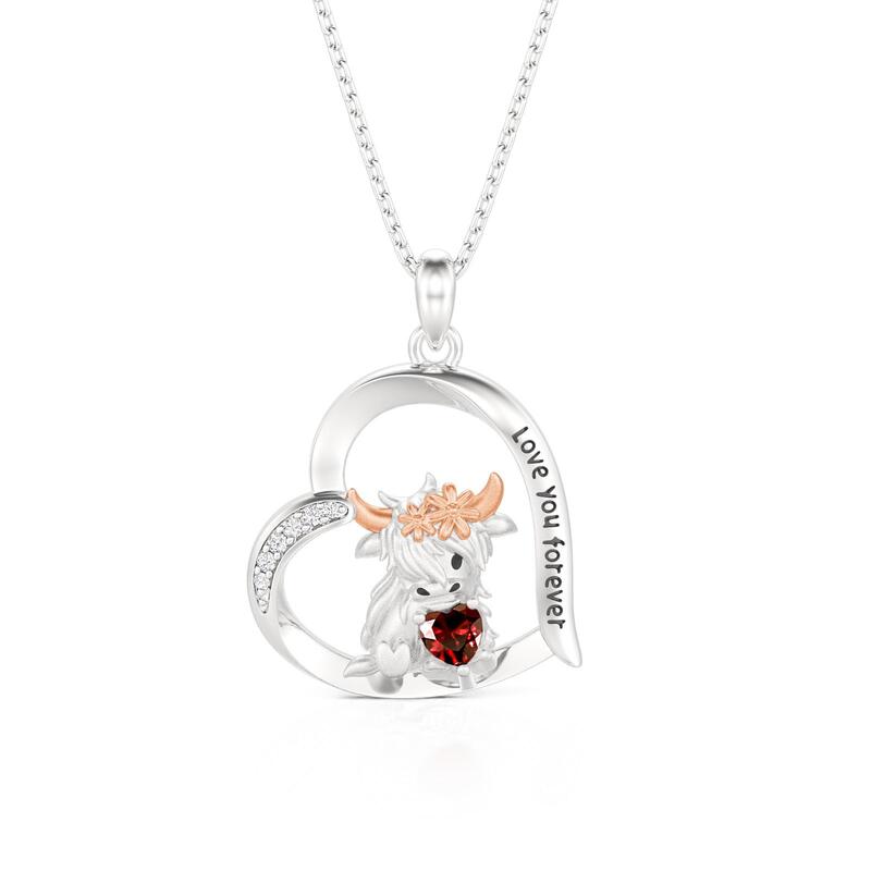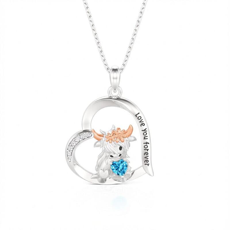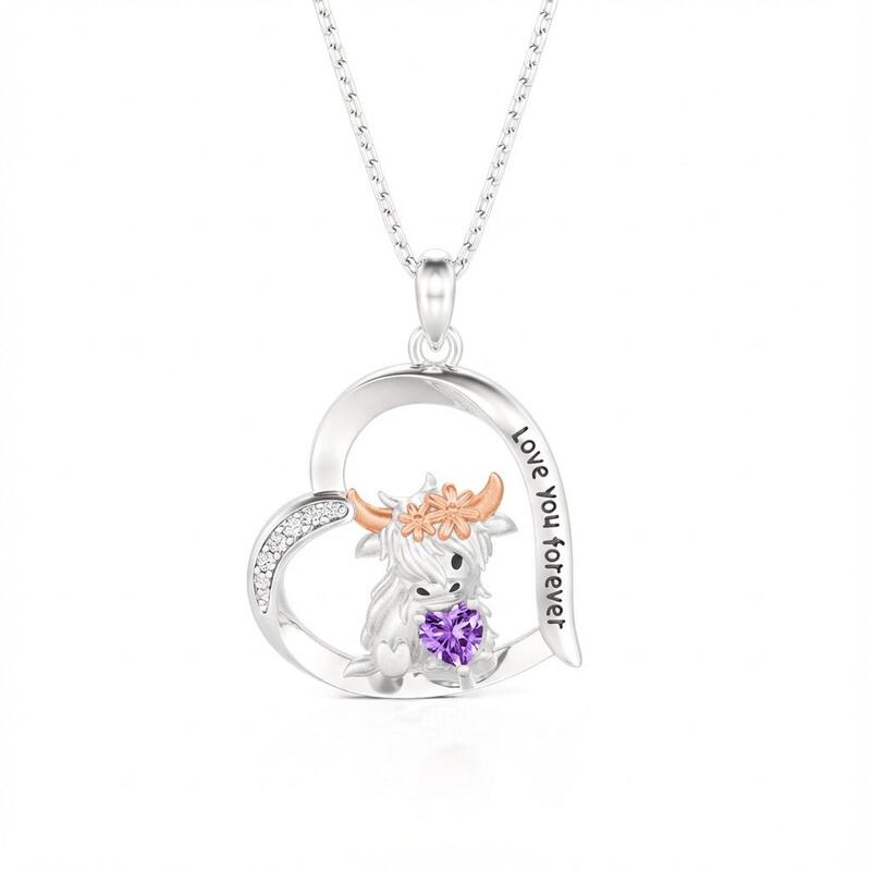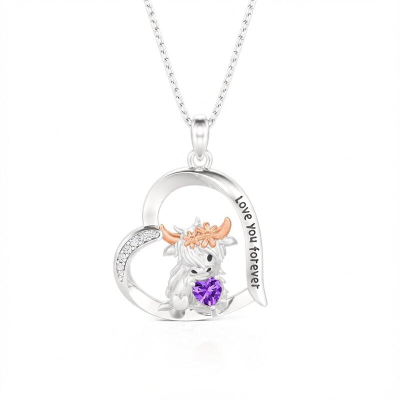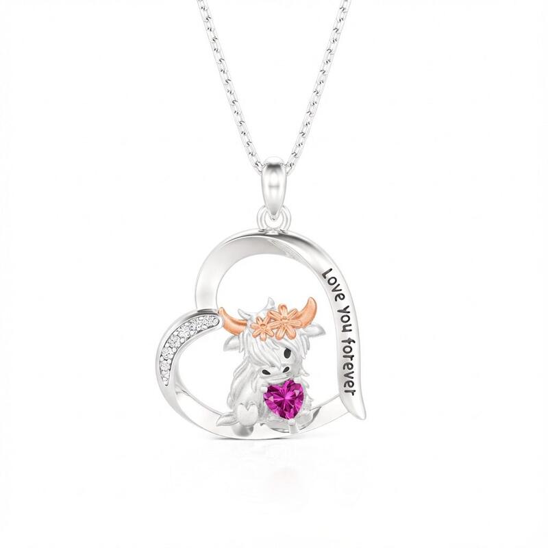 Celebrate the special bonds of love and friendship with the Jeulia Hug Me Custom Highland Cow Heart Necklace with Birthstone. This charming piece features an adorable Highland cow nestled within a heart, symbolizing warmth and affection. The intricate details, including the cow's floral accents, showcase both whimsy and tenderness. At the center of the heart lies a striking birthstone, allowing for a personalized touch that makes this Highland Cow necklace a heartfelt gift for loved ones. The inscription “Love You Forever” elegantly surrounds the design, reinforcing the sentiment of enduring love and devotion. This heart birthstone necklace is more than just a piece of jewelry; it’s a token of love that captures special moments and cherished relationships, making it the perfect gift for birthdays, anniversaries, or any occasion that deserves celebration. Wear this engraved heart necklace to express your affection or give it to someone special to convey your heartfelt emotions.