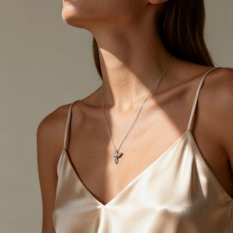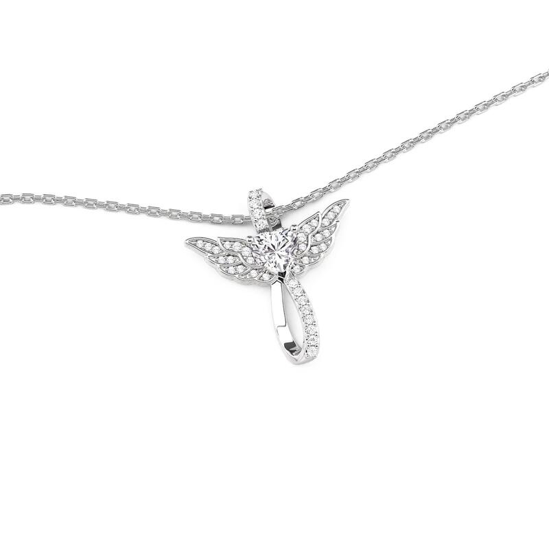 Wings soft as whispers unfold from an infinity symbol, embracing a pavé-set heart at its center. A pendant that speaks of endless protection and tender closeness, This Jeulia Infinity Angel Wing Necklace is designed to rest near your pulse—where love feels both infinite and intimately near.