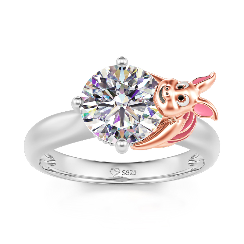 Jeulia Hug Me "Keep Innocence" Pink Pig Round Cut Sterling Silver Ring
