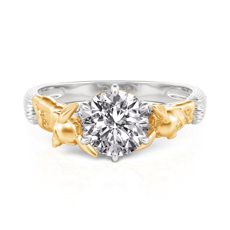 The Jeulia Hug Me Nature Inspired Fox and Bunny Ring in Sterling Silver showcases a playful and whimsical design that captures the essence of relationship and nature. This unique animal ring features intricately crafted figures of a fox and a bunny, sitting playfully on either side of a heart-shaped centerpiece. The combination of sterling silver with gold accents adds a delightful contrast, enhancing its charm. Perfect for animal lovers and those who appreciate nature-inspired jewelry, this hug me ring serves as a symbol of love and companionship, making it a lovely gift or a special addition to any collection.