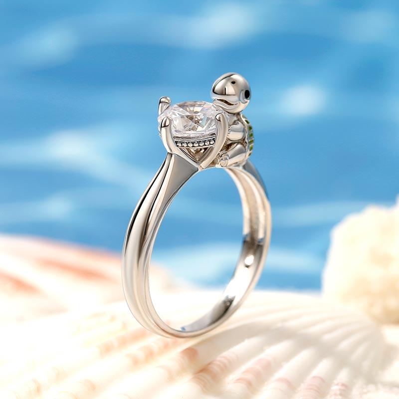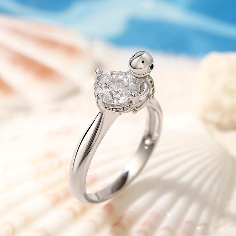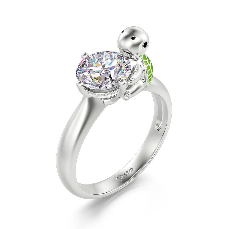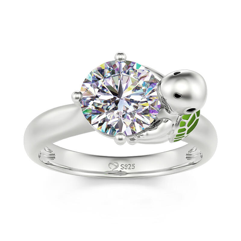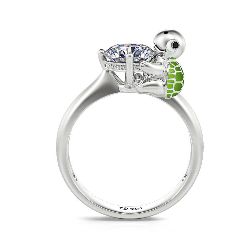 Jeulia Hug Me "Slowest Chase" Tortoise Round Cut Sterling Silver Ring