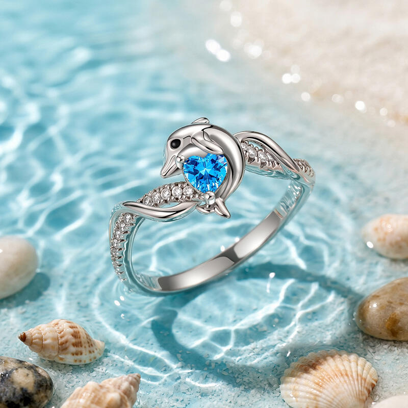 This Jeulia “Hug Me” twisted-band custom birthstone dolphin ring captures the vitality of the ocean and the tenderness of an embrace right on your finger. A meticulously carved dolphin cradles a heart-shaped birthstone in an embracing pose, its upturned tail fin seeming to leap out of the water; The heart-shaped center stone can be customized with any of the 12 birthstones. The band features a dynamic twisted design, with two strands of metal flowing naturally from either side of the dolphin like ripples, creating a continuous visual pattern on the finger that symbolizes the eternal cycle of protection and companionship. The overall design is filled with childlike charm and warmth, capturing the lively cuteness of marine life while subtly conveying the healing message of “being gently embraced.” This hug me ring makes a heartwarming token for a loved one or for yourself, ensuring that every time you wear it, it feels as though a sea spirit is whispering, “You deserve to be gently embraced by the world.”
