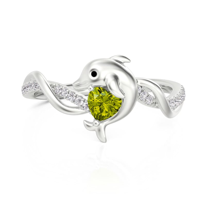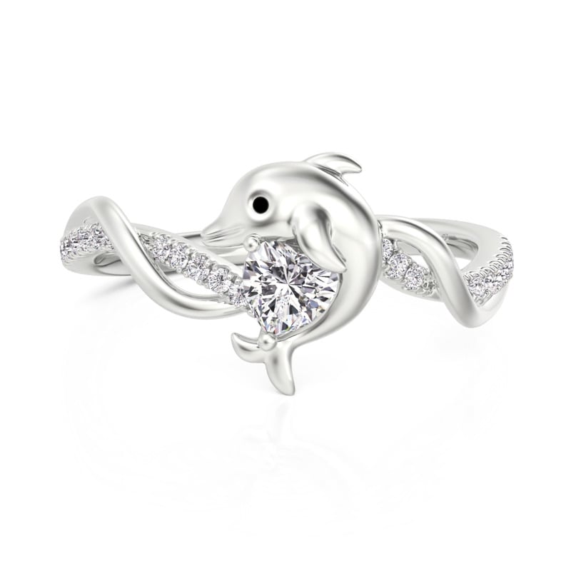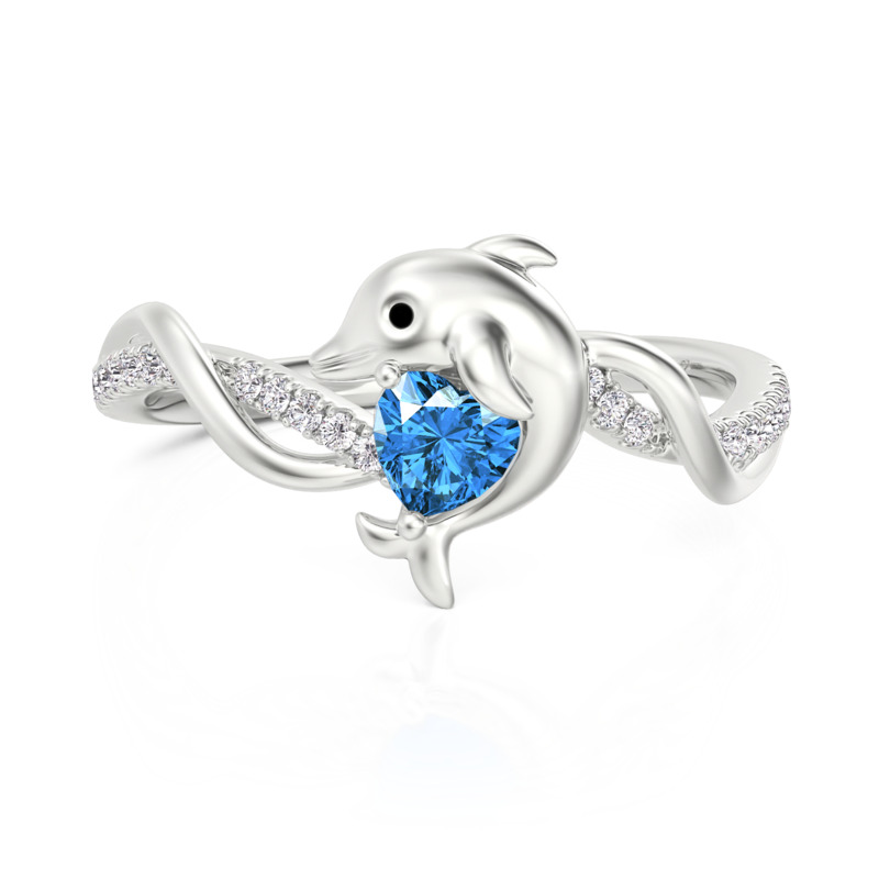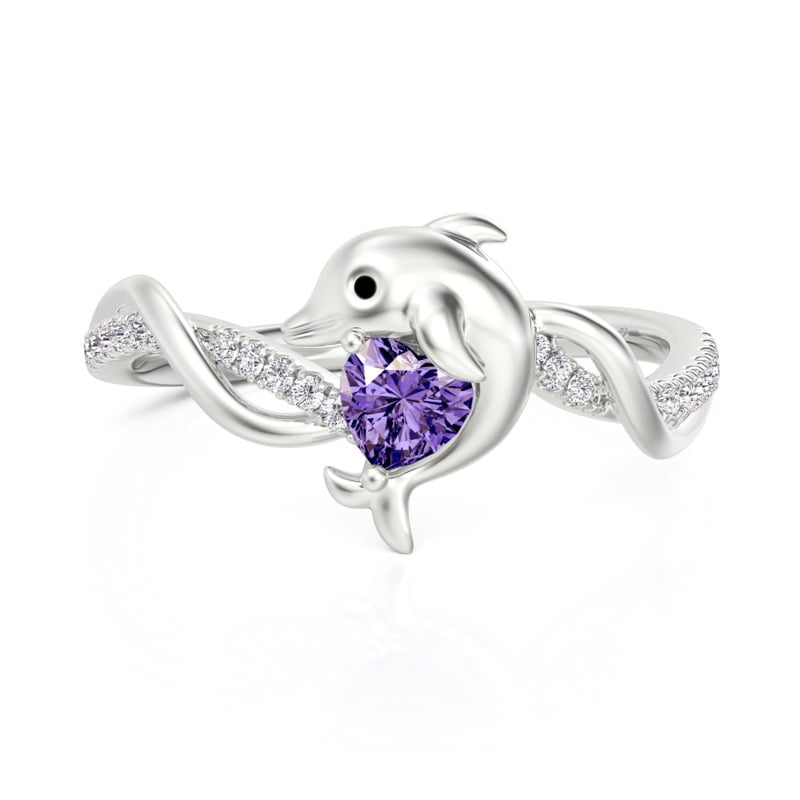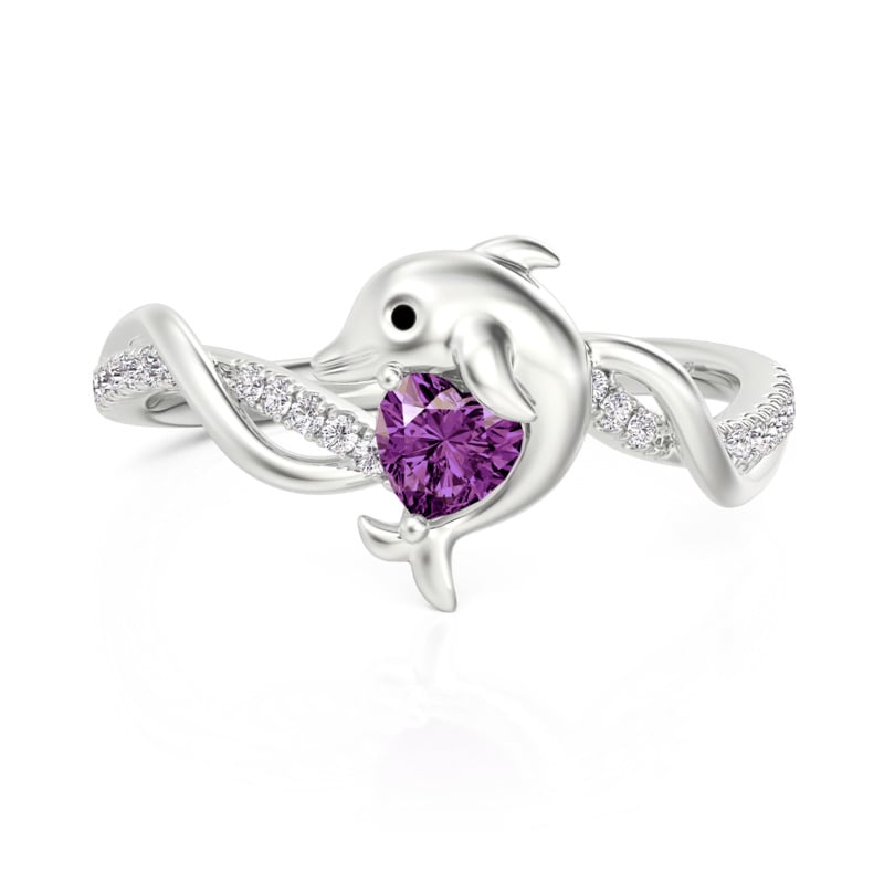 Jeulia Hug Me Twist Dolphin Ring with Custom Heart Birthstone