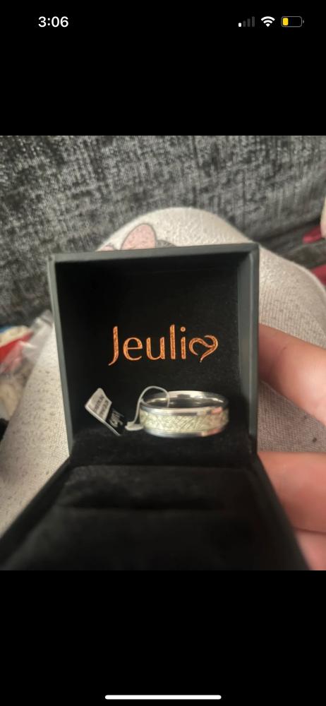This hand-crafted titanium steel ring features a polished, white gold plated finish with a stunning imitated meteorite inlay. Your titanium steel band will maintain its luster, beauty, and shape forever. Its eternal strength is the perfect symbol of eternal love. An astounding lattice of crystalline markings, known to science as Widmanstätten patterns, is a hallmark of iron ore procured from Muonionalusta meteorite. These intricate scars celebrate survival across 4 billion years of history - now they record the adventures of your journey.