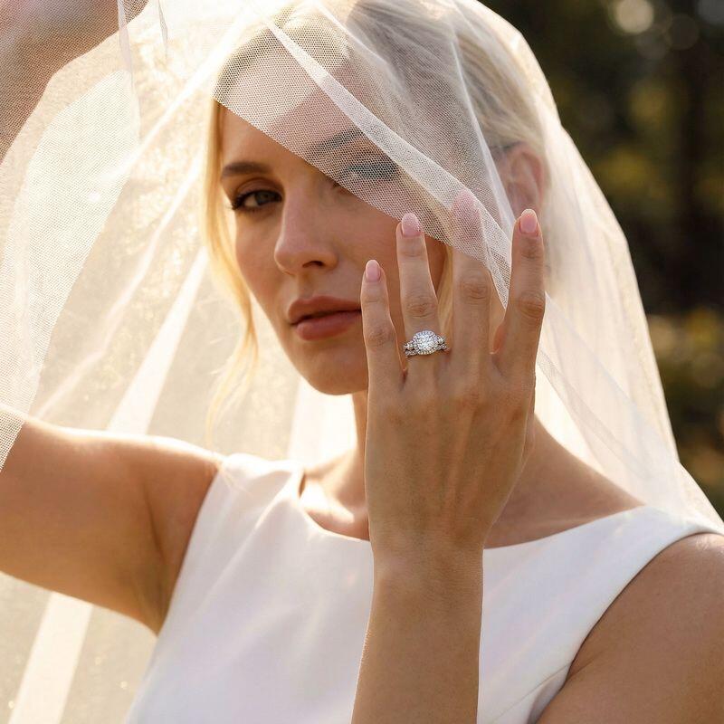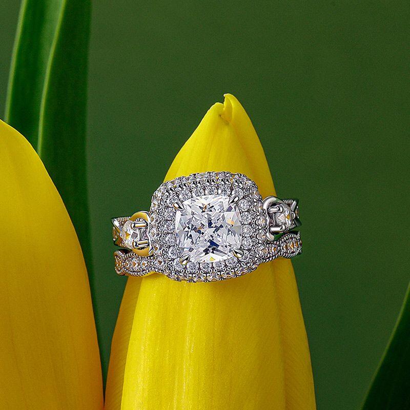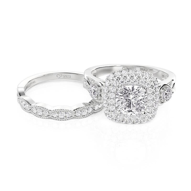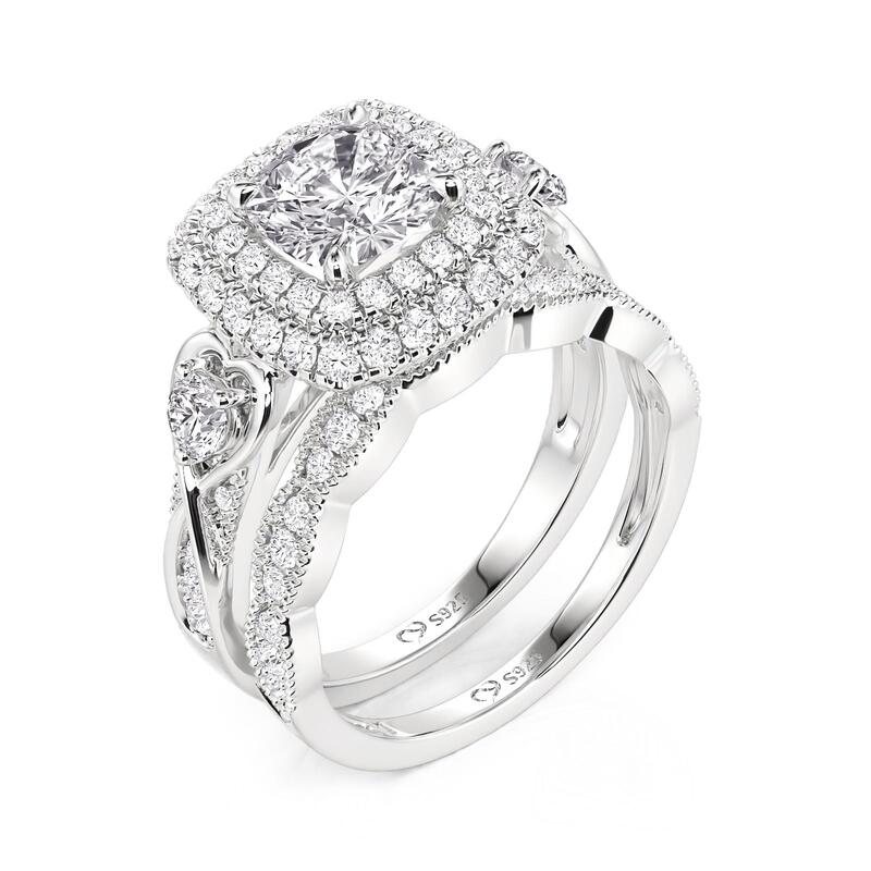 Jeulia Infinity Cushion Cut Halo Engagement Ring Set