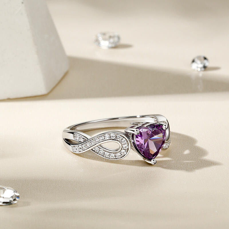 This heart ring represents your eternal love, you can choose one of different heart stone colors as your lucky color, the color of the ring arm can also be customized for you. The infinity symbol symbolizes the eternity of love, writing every page of your story in the long years.