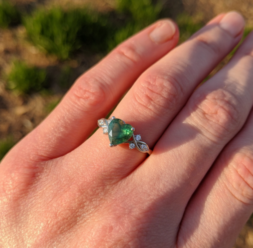 Jeulia Infinity Heart Moss Agate Engagement Ring
