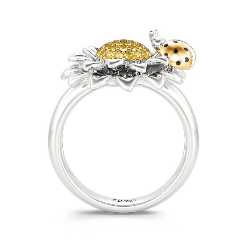 Jeulia Ladybug With Daisy Sterling Silver Ring